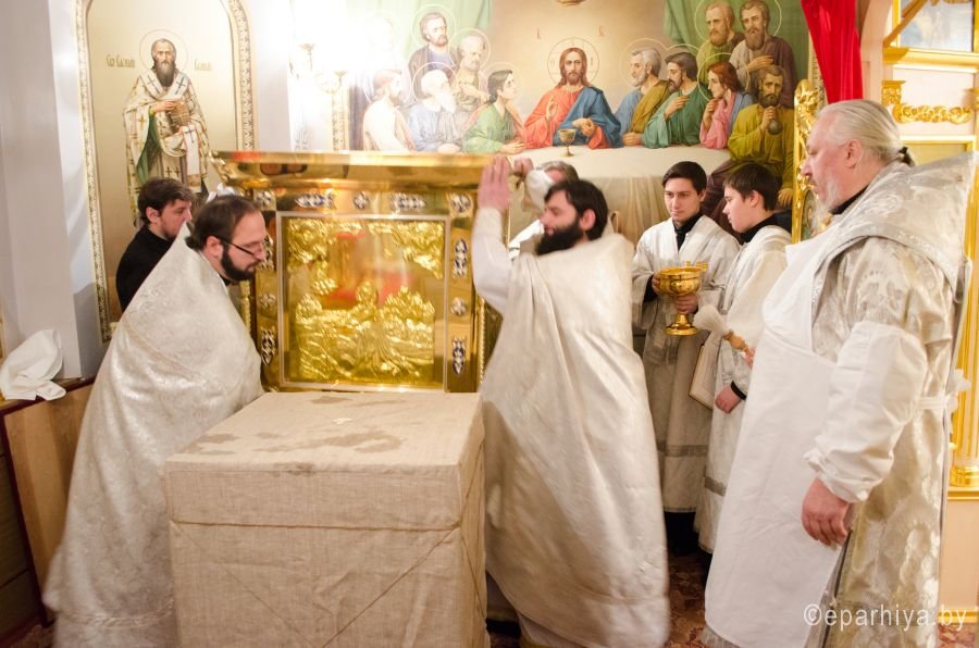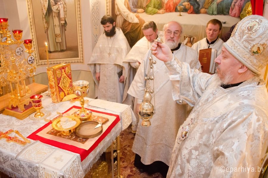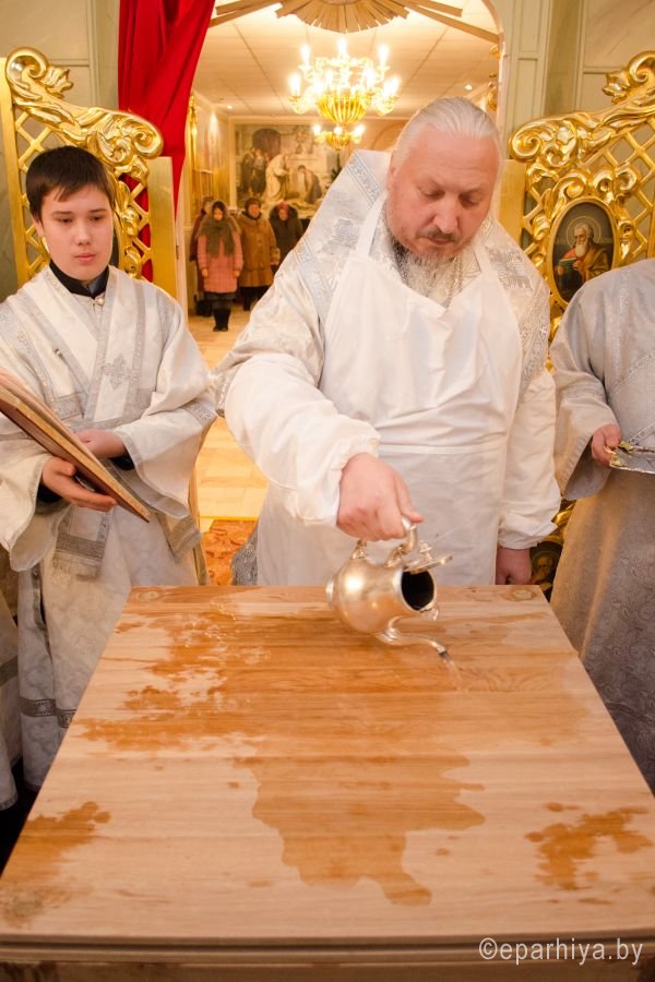 15 февраля 2015 года стал днём особенной духовной радости для прихожан. В нижнем храме Свято-Петро-Павловского кафедрального собора г.Гомеля состоялось значимое событие – освящение престола. Торжественное событие в сослужении духовенства собора возглавил Преосвященный Стефан, епископ Гомельский и Жлобинский, после чего была совершена Божественная Литургия. |