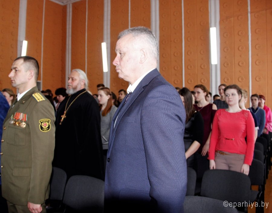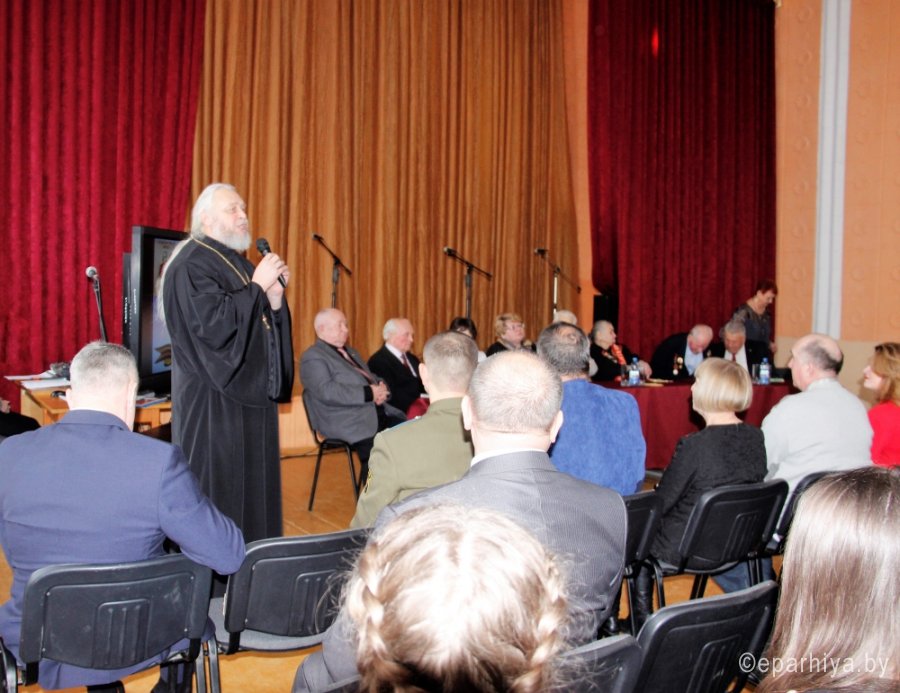 23 февраля, в День защитников Отечества и Вооружённых сил Республики Беларусь, благочинный Рогачёвского округа протоиерей Алексей Смотрицкий принял участие в районной конференции "Встреча поколений "Патриотизм. Мужество. Мир". В актовом зале средней школы №2 имени В.М. Колесникова собрались ветераны Великой Отечественной войны - освободители г. Рогачёва, заместитель председателя Гомельского областного отделения общественного объединения «Белорусский Фонд Мира» Восарев Владимир Анатольевич, представители администрации и общественных организаций района, молодёжь : старшеклассники школ города, студенты Рогачёвского педагогического колледжа и Рогачёвского государственного профессионально-технического колледжа строителей. Накануне Дня освобождения Рогачёва от немецко-фашистских захватчиков (24 февраля) представители разных поколений вспомнили о героическом подвиге и мужестве советских воинов в годы Великой Отечественной войны и почтили память погибших минутой молчания. Участники освобождения Рогачёвской земли поделились своими воспоминаниями об этих событиях с теми, кто не видел ужасов войны. О воинском долге, служении и подвиге в жизни человека рассказал в своём выступлении протоиерей Алексей Смотрицкий. Добрые слова и поздравления прозвучали и в адрес тех, кто не жалел своих сил в становлении и развитии района в мирное время. Завершилась встреча поколений концертной программой, которую подготовили студенты педагогического колледжа. |
