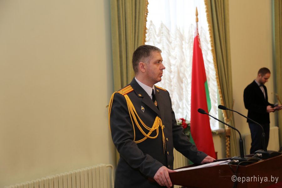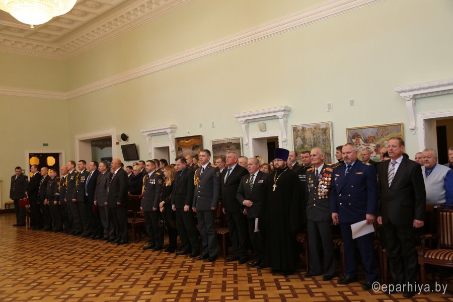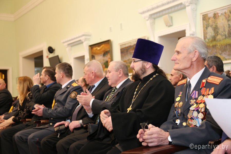 17 Февраля 2017г., в ДК "Железнодорожников" состоялось праздничное мероприятие. На торжественной части присутствовали начальник Гомельского отдела внутренних дел на транспорте подполковник Левкович Д.А, председатель совета ветеранов на транспорте Маланченко Н.Н, заместитель начальника отдела идеологии и кадровой работы УВД Гомельского исполкома подполковник Королёв С.А, настоятель храма прп. Никиты исповедника, епископа Халкидонского аг.Поколюбичи протоиерей Александр Алехнович, действующие сотрудники, ветераны транспортной милиции, гости. Перед началом концерта с поздравительным словом выступил протоиерей Александр Алехнович: "Сегодня праздник не мундира и погон, а людей которые добросовестно выполняют ежедневно свои долг перед Отечеством и мирными гражданами, порой рискуя свой жизнью - Вы обеспечиваете покой как на транспорте, так и во всей нашей страны". Личному составу были вручены награды. После официальной части состоялся праздничный концерт. |