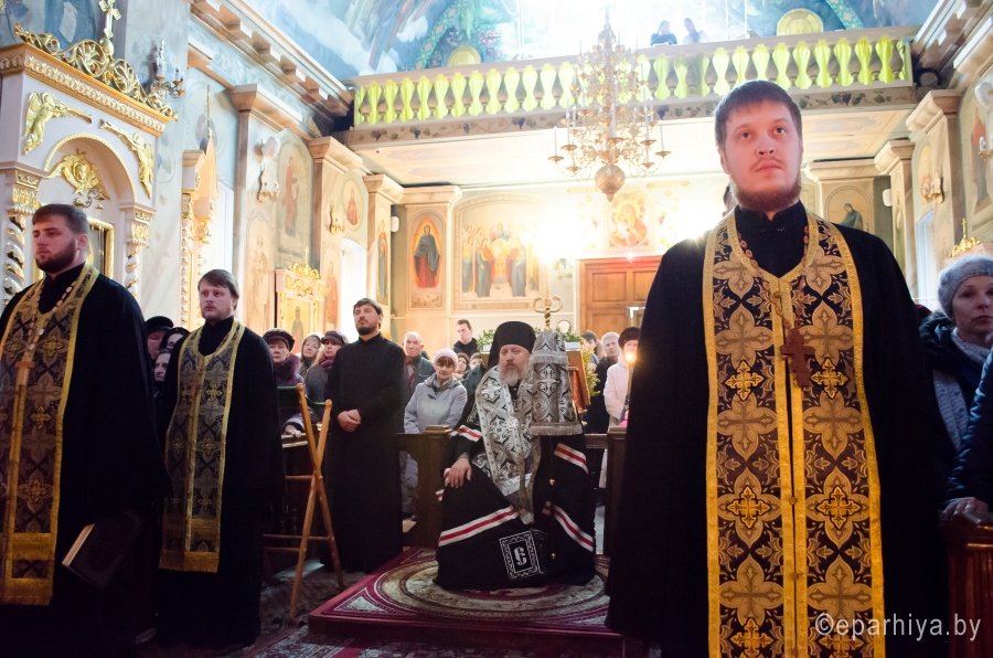27 февраля 2017г., в понедельник первой седмицы Великого поста, Преосвященный Стефан совершил Великое повечерие с чтением покаянного канона преподобного Андрея Критского. Правящему архиерею сослужили: секретарь Гомельской епархии протоиерей Георгий Алампиев и духовенство храма. Во время чтения Великого канона мы слышим множество имен, известных и не очень: Адам, Ева, Авель, Каин, Ламех, Хам, Давид, Соломон и т.д. Все это – реальные герои Священного писания, история жизни которых нам здесь приоткрывается. Но не это – главное. Праотеческий чин из церкви Иоанна Златоуста в Коровниках, Ярославль, 1654 год. Фото с сайта skyscrapercity.com «Ключ» к пониманию канона Андрея Критского в том, чтобы в библейских героях, в их падениях и подвигах увидеть свое падение и возможность восстания. Святой Андрей рассказывает историю мира, отпавшего и возвращающегося к Богу, которая в то же время есть история души каждого из нас. Потому что каждая душа проходит тем же путем испытаний, стоит перед тем же выбором. Но как же увидеть в героях Библии – самого себя? Вот мы читаем в самом начале Канона: «Вместо Евы чувственный мысленная ми бысть Ева, во плоти страстный помысл, показуяй сладкая и вкушаяй присно горькаго напоения». («Вместо чувственной Евы восстала во мне Ева мысленная — страстный помысел, обольщающий приятным, но при вкушении всегда напояющий горечью»). Что все это значит? Пример Евы увлек Адама к греху. Так же каждого из нас влечет к греху мысленная ева – страстный, грешный помысел. Пока страсть у человека не удовлетворена, он страдает, мучается. С удовлетворением страсти он надеется получить удовольствие, избавление от мучений. Это и обещает душе страстный помысел, толкая ее на грех, как когда-то толкнул он на грех нашу праматерь Еву. Но как Ева обманулась в надежде получить блаженство от запретного плода, так обманывается в своих расчетах человек, мечтающий найти в грехе сладость. |