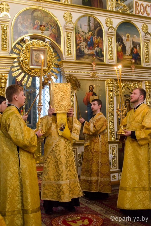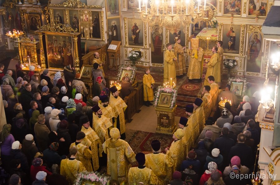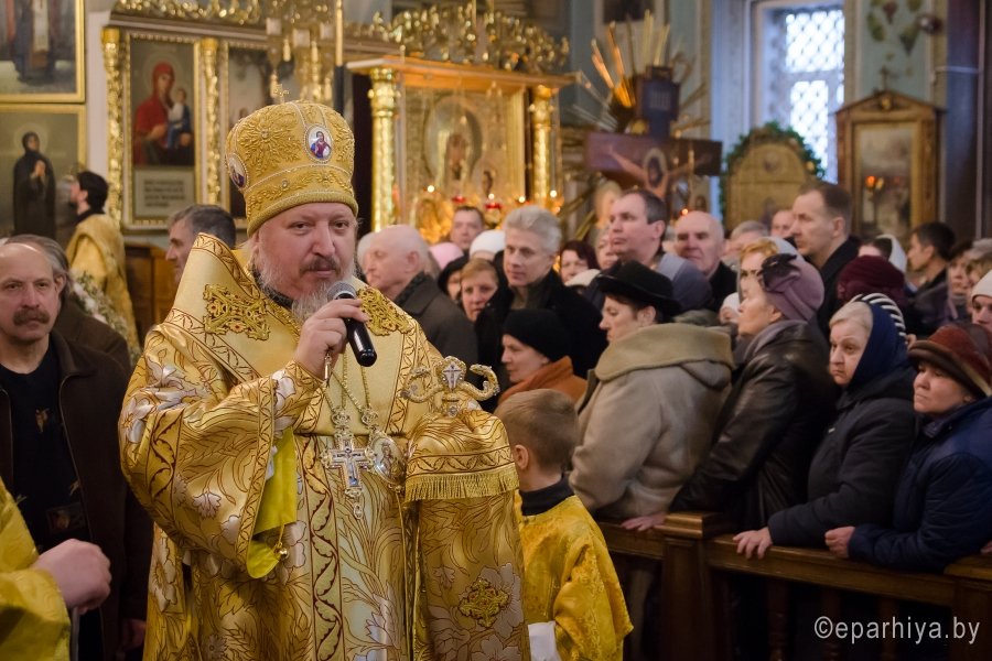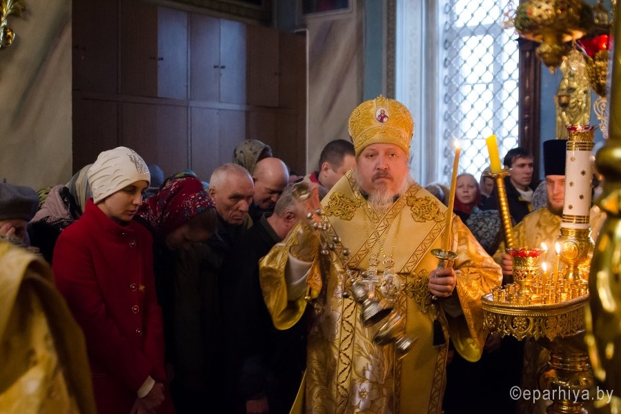 4 марта в канун недели 1-й Великого поста, Торжество Православия, преосвященный Стефан совершил всенощное бдение в Свято-Петро-Павловском кафедральном соборе г. Гомеля. Преосвященному сослужили: секретарь Гомельской епархии протоиерей Георгий Алампиев и духовенство собора. По окончании богослужения Владыка обратился к молящимся со словами Архипастырского назидания. |