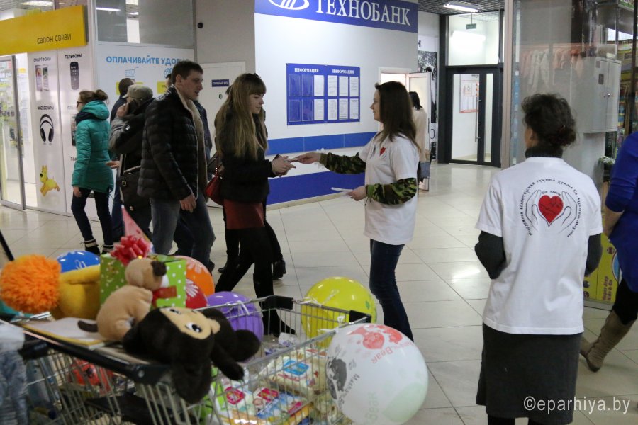 3 и 4 марта 2017г., в ТЦ «Мандарин Плаза» прошла благотворительная акция «Поможем детям», подготовленная волонтерами храма святого Архангела Михаила г. Гомеля. Цель акции – привлечь внимание к проблемам жизни неизлечимо больных детей. В благотворительной акции мог поучаствовать любой желающий, передавая волонтерам храма различные вещи, которые могут пригодится детям. Сбор подарков продолжается: каждый день в храме святого Архангела Михаила в г. Гомеле по адресу: пр. Речицкий, 34 (одноразовые подгузники № 5-7, seni m, полотенца, жидкое детское мыло, влажные салфетки, пластмассовые игрушки). В этом году к волонтерам храма присоединились молодые юноши и девушки из волонтерских отрядов «Млечный путь» СШ № 22 и «Детская радуга» Гомельского государственного медицинского университета, которые с энтузиазмом откликнулись на призыв о помощи. Организаторы поблагодарили всех, кто внес свою лепту и попытался сделать жизнь больных детей лучше! |