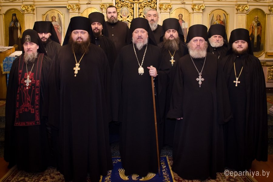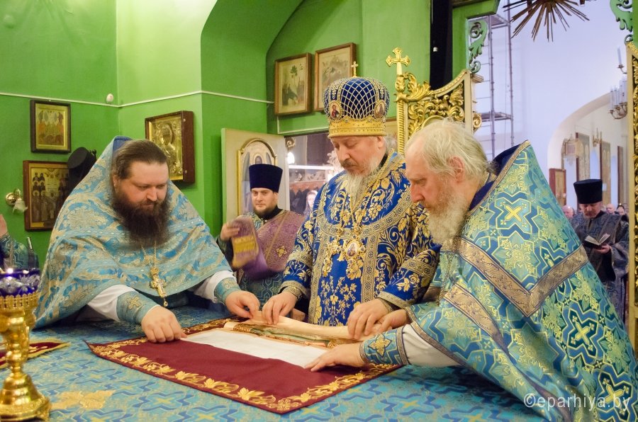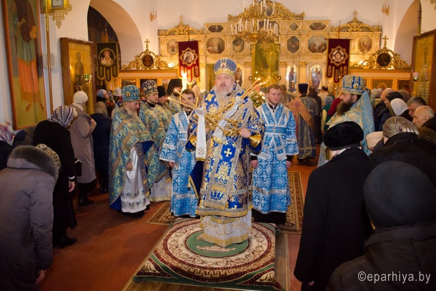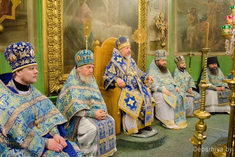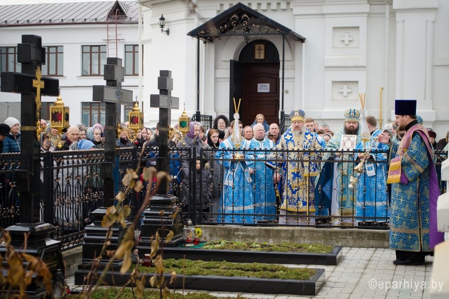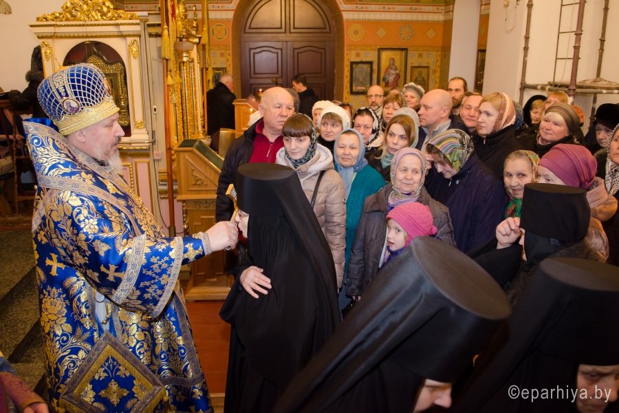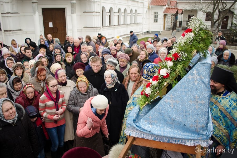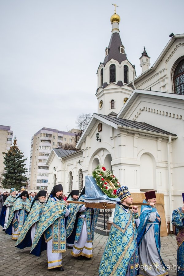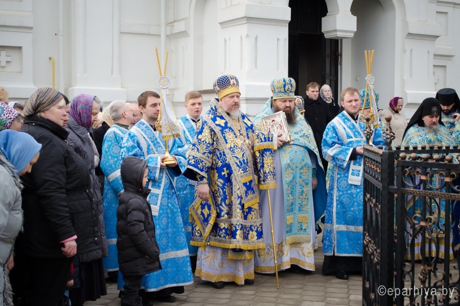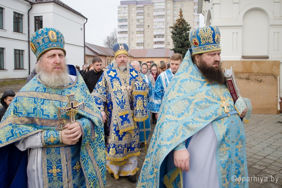 6 марта 2017г., в праздник Козельщанской иконы Божией Матери, Преосвященный Стефан совершил Божественную литургию Преждеосвященных Даров в Свято-Никольском мужском монастыре г. Гомеля. Преосвященному сослужили: секретарь Гомельской епархии протоиерей Георгий Алампиев, наместник Свято-Никольского мужского монастыря архимандрит Амвросий (Шевцов), братия монастыря в священном сане и духовенство епархии. По запричастном стихе игумен Феодорит (Золотарев) произнес проповедь. Он напомнил прихожанам об обретении образа Божией Матери «Козельщанская» и появлении чудотворного списка с этой иконы в Никольском монастыре. По окончании литургии Владыка Стефан возглавил крестный ход с чтимой иконой, в ходе которого на могилах приснопамятных архиепископа Аристарха (Станкевича) (+2012) и архимандрита Антония (Кузнецова) (+2014) была совершена заупокойная лития. За богослужением молились игуменья Свято-Тихвинского женского монастыря Вера (Афонькина) с сестрами и сестры Свято-Иоанно-Кормянского женского монастыря. По окончании богослужения Владыка совершил рабочий визит в реконструируемое здание Гомельского Епархиального Управления. Эконом Гомельской епархии протоиерей Владимир Масалитин ознакомил Преосвященого с ходом строительных работ. |