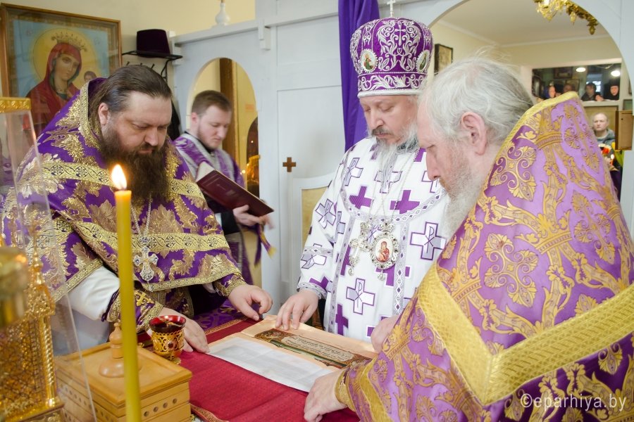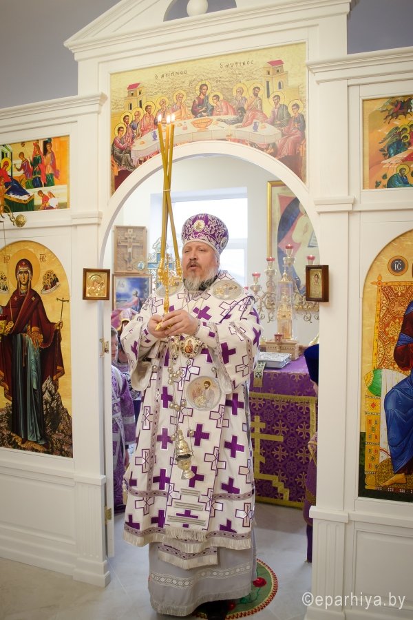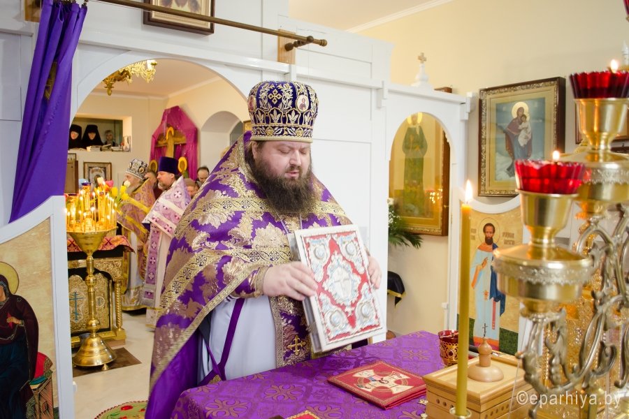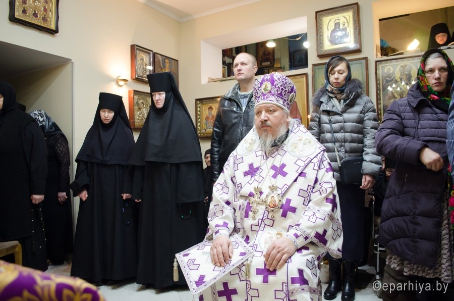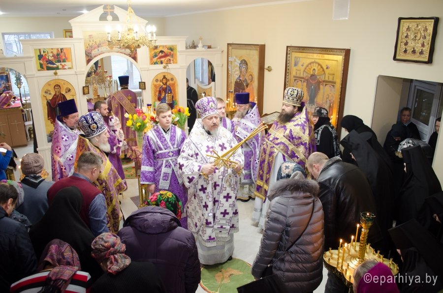 8 марта 2017г, в день памяти прп. Матроны Московской, Преосвященный Стефан совершил Божественную литургию Преждеосвященных Даров в одноименном храме Свято-Тихвинского женского монастыря г. Гомеля. Преосвященному сослужили: благочинный монастырей Гомельской епархии архимандрит Амвросий (Шевцов) и духовенство епархии. За богослужением молились игуменья Свято-Тихвинского женского монастыря Вера (Афонькина) с сестрами и сестры Свято-Иоанно-Кормянского женского монастыря. По окончании богослужения Владыка поздравил причастников с принятием Святых Христовых Таин и обратился к молящимся со словами Архипастырского назидания. |