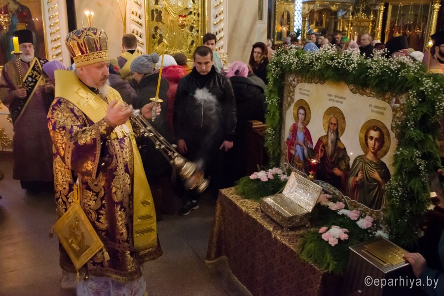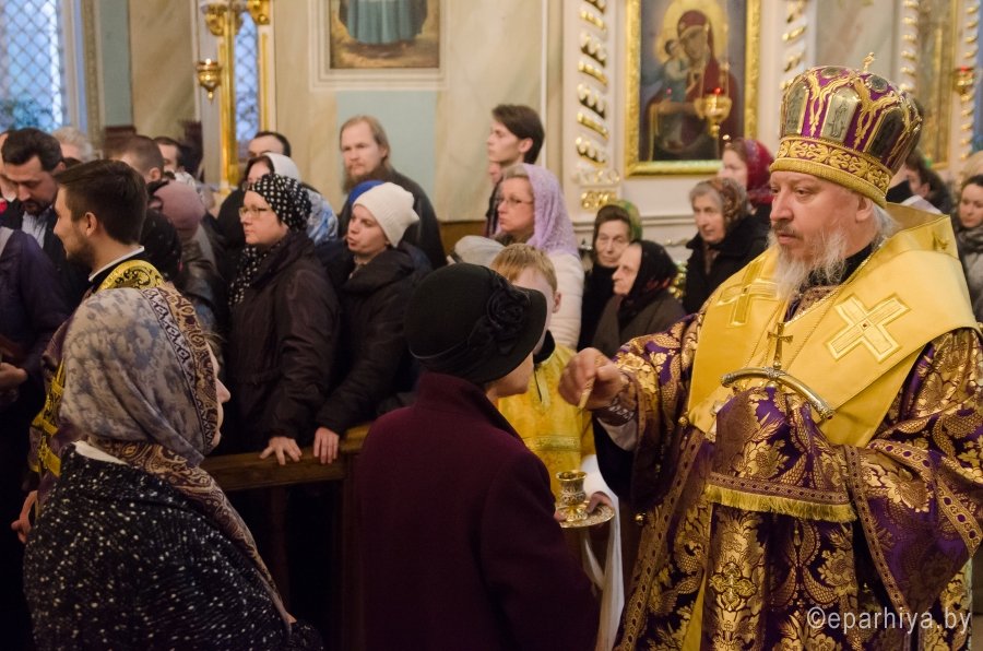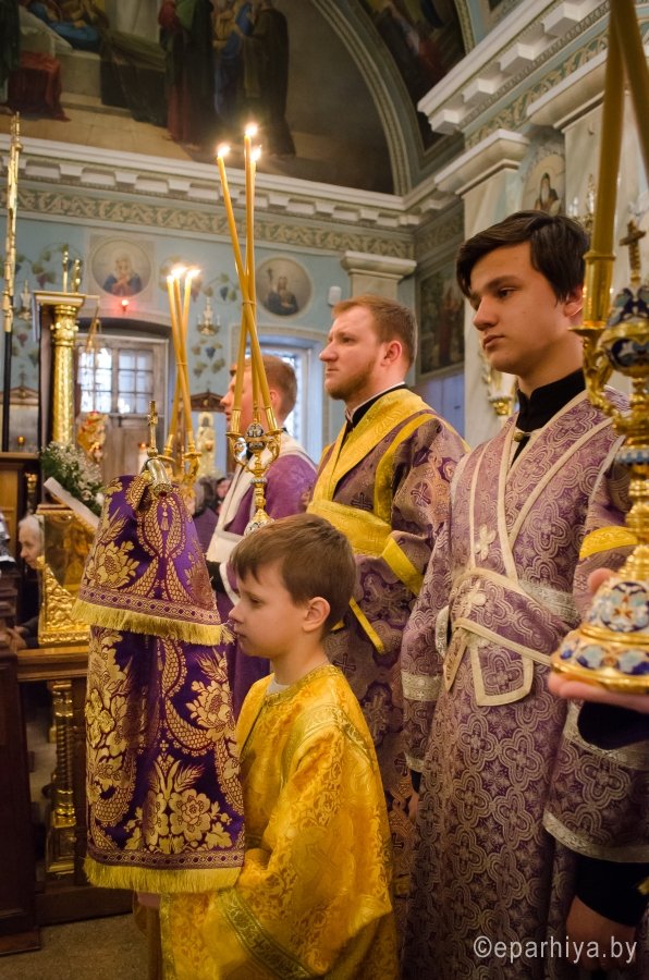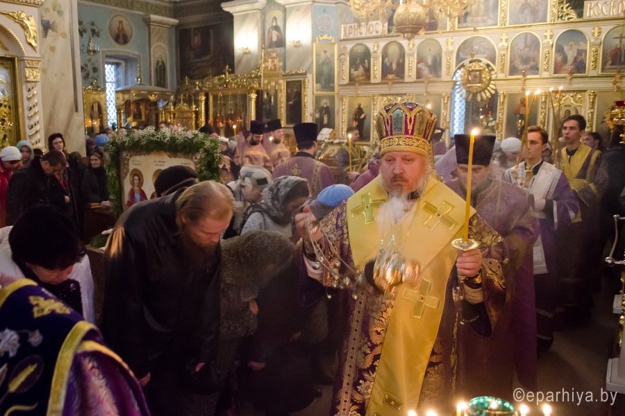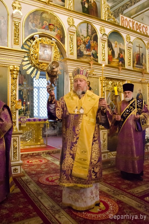 11 марта 2017г., в канун Недели 2-й Великого поста, Преосвященный Стефан совершил всенощное бдение в Свято-Петро-Павловском кафедральном соборе г. Гомеля. Преосвященному сослужили: секретарь Гомельской епархии протоиерей Георгий Алампиев и духовенство собора. По окончании богослужения Владыка обратился к молящимся со словами Архипастырского назидания. |