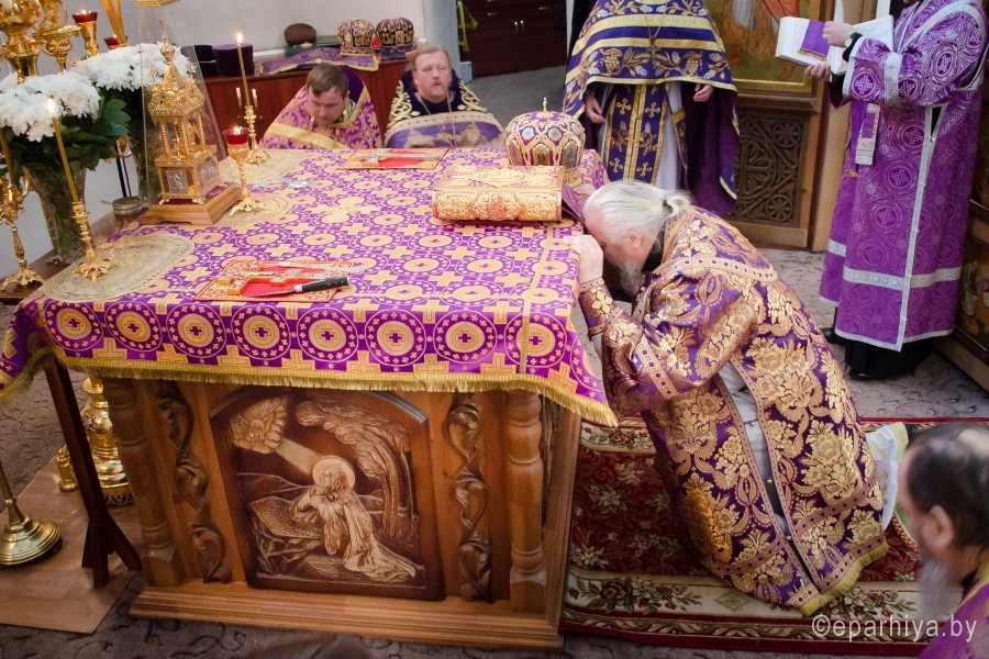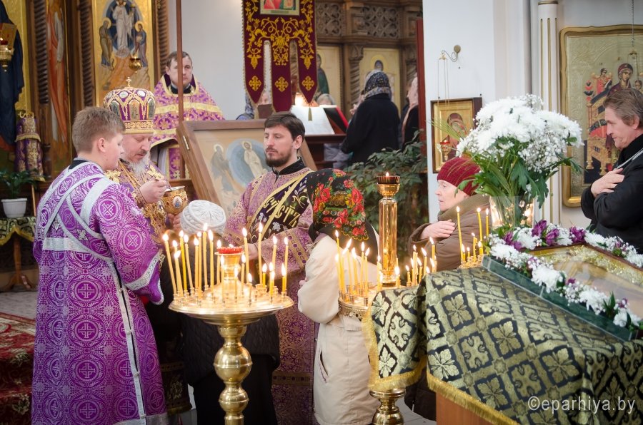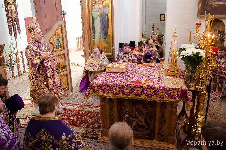 17 марта 2017г., в пятницу 3-й седмицы Великого поста, Преосвященный Стефан совершил Божественную литургию Преждеосвященных Даров в Спасо-Преображенском храме г. Светлогорска. Преосвященному сослужили: секретарь Гомельской епархии протоиерей Георгий Алампиев, благочинный Светлогорского округа протоиерей Александр Кисель и духовенство округа. За богослужением Владыка иерея Павла Красиченко возвел в сан протоиерея, а иерея Максима Борисенка удостоил правом ношения камилавки. По окончании Литургии Владыка поздравил Причастников с принятием Святых Христовых Таин и обратился к молящимся со словами Архипастырского назидания. |