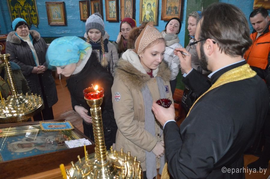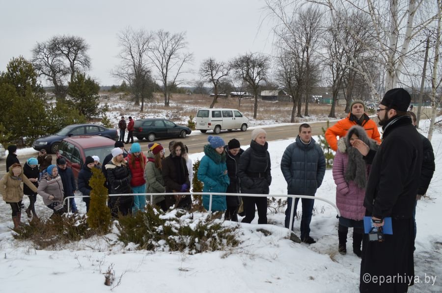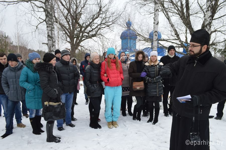 Новый паломнический маршрут д. Васьковка – г. Ельск — урочище Березовка организован молодежным отделом Гомельской епархии. Маршрут входит в проект «Святыни родного края», который организован отделом и председателем комиссии по канонизации протоиереем Александром Лопушанским. Молодые люди из г. Гомеля и из г. Светлогорска 14 февраля 2015г. посетили место явления чудотворной иконы Божьей Матери Васьковская в д. Васьковка. Протоиерей Симеон Тур, настоятель храма иконы Божией Матери «Умиление», рассказал путешественникам про явление «Васьковского» образа. Далее путь лежал по дороге, построенной в 1817г. к перенесению образа в г.Ельск. Посетили Ельский Свято-Троицкий храм, построенный в 1760г. и является памятником деревянного зодчества. Финальным аккордом поездки стало посещение памятного Креста на месте расстрела 558 человек, в числе которых и священномученик Алексий Лельчицкий. Такие поездки всегда уникальны – это и радость от совместной молитвы и от общения, общая трапеза, новые знакомства, возможность приобщиться к истории и узнать о святынях нашей Родины. |