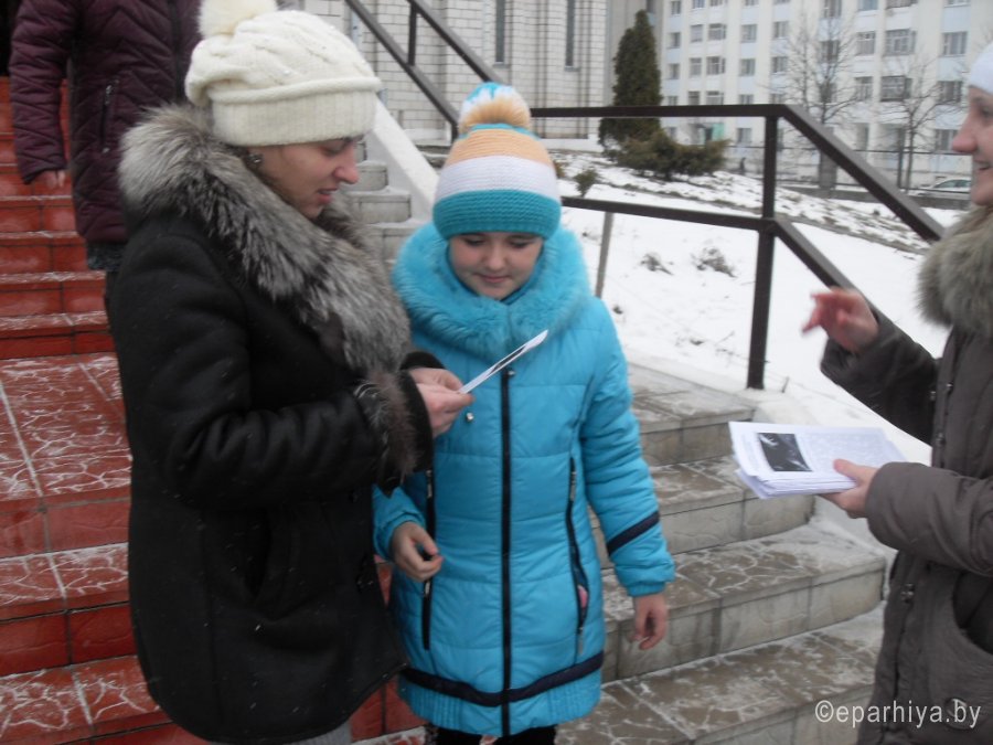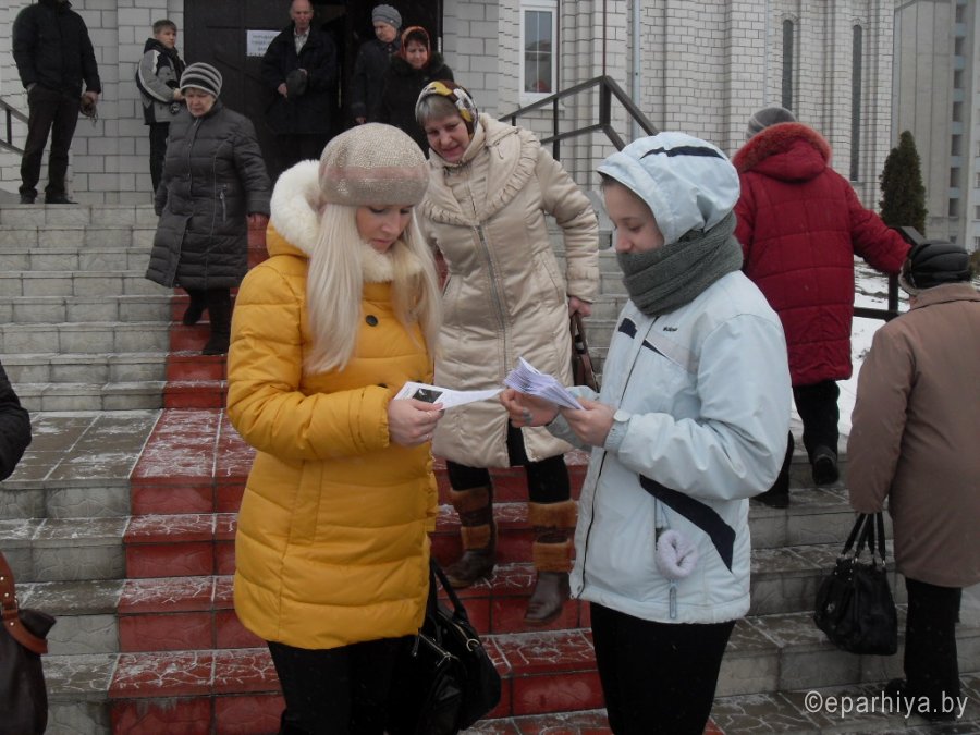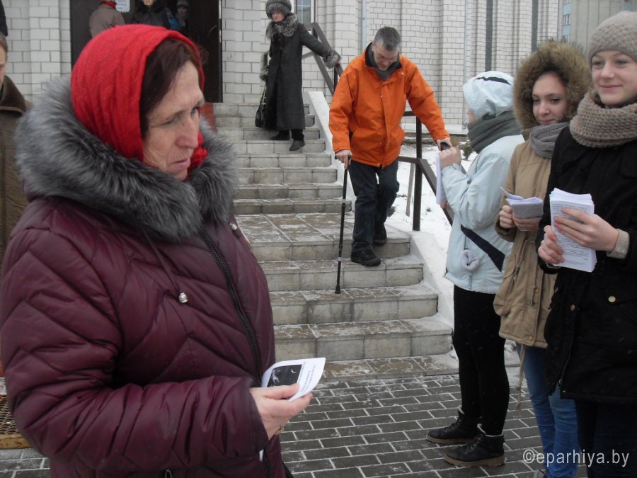 Многочисленными просветительскими акциями 15 февраля отметили день молодежи в Гомельской епархии. В областном центре и в районных городах Гомельской епархии молодежь поздравляла прихожан с праздником Сретения Господня и Днем молодежи. Раздачей информационно-просветительских буклетов, подготовленных молодежным отделом, ребята старались рассказать о истории праздника, напомнить всем о Христе и о той значимой работе, которую сегодня осуществляет Церковь в молодежной среде, объединяя под свои своды молодых ребят. Активное участие приняла молодежь Свято-Петро-Павловского кафедрального собора г. Гомеля, храма в честь святого преподобного Серафима Саровского г. Гомеля, храма Преображения Господня г. Светлогорска, храма святого благоверного князя Александра Невского г. Рогачева, храма в честь святого преподобного Серафима Саровского, г. Жлобина. Как отметила Наталья Жданова, одна из участниц акции, участвовавшая впервые: "Было интересно наблюдать, как на лицах людей появляется улыбка, когда ты встречаешь их у ворот Собора словами: - С праздником Вас! и вручаешь буклетик - людям приятно. Это и проявление внимания, и возможность услышать ответы на свои вопросы о смысле праздника, о содержании буклета. В ответ на слова благодарности у тебя самой на душе становится тепло и радостно". |