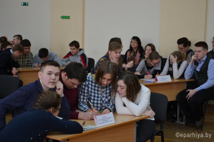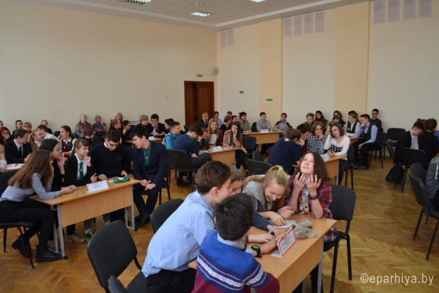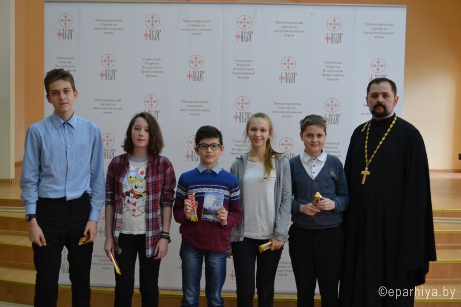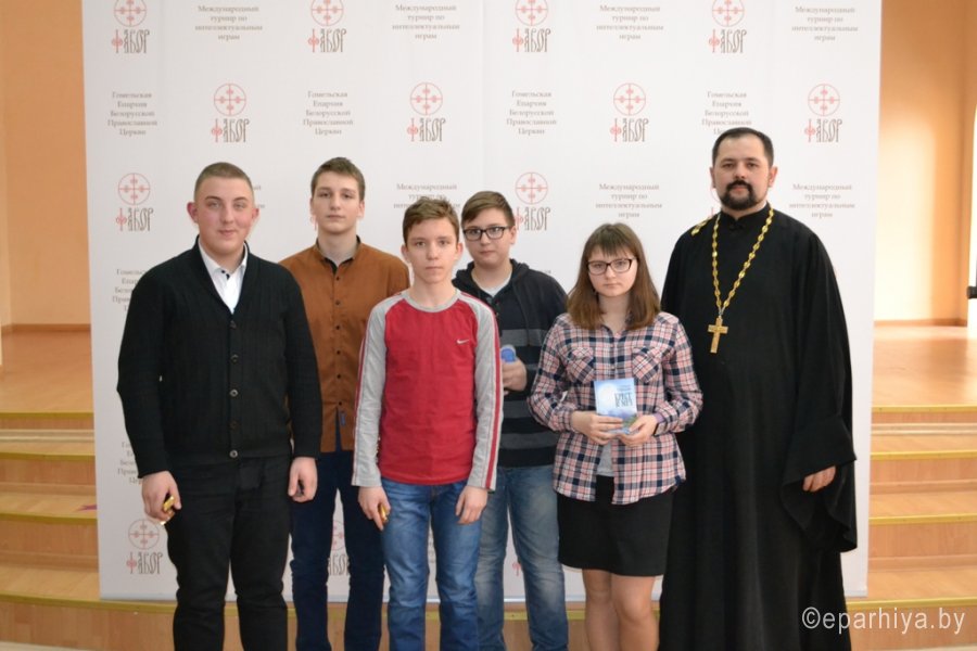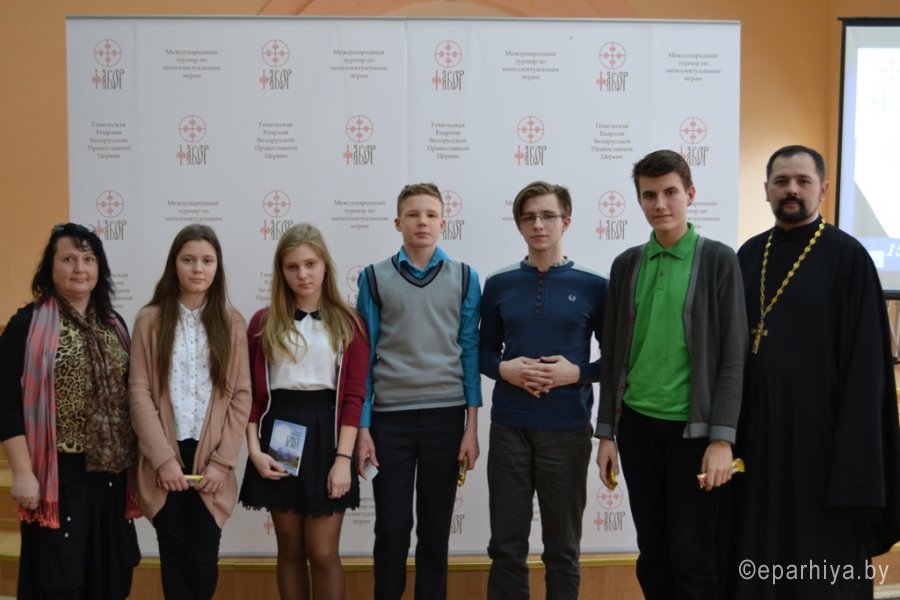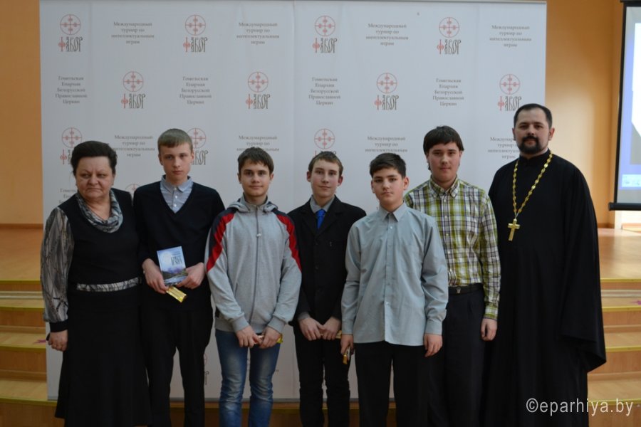 15 марта 2017г. на базе гимназии №46 им. Блеза Паскаля г.Гомеля состоялся городской этап Международного турнира по интеллектуальным играм «Фавор». В игре приняли участие 13 команд из школ г.Гомеля. Серия игр Международного турнира в 2017г. проходит на тему «Новомученники и исповедники Православия. 1917-2017гг. - уроки столетия». Украшением открытия Турнира стал детский ансамбль «Смайлики» из ГУО №43 г.Гомеля (руководитель Шалыгина Татьяна), в исполнении которых прозвучала замечательная детская песня о планете Земля. С напутственным словом к командам и их руководителям обратился председатель Миссионерского отдела Гомельской епархии протоиерей Артемий Кривицкий: «Уважаемые игроки! Этот отборочный этап определит одну команду, которая получит сертификат на участие в Международном турнире по интеллектуальным играм «Фавор» в 2017г. Надеюсь, что вопросы, которые сегодня вы постараетесь «взять», станут для вас не только поводом проявить свои знания, но и пополнить их. Желаю всем помощи Божией в и игре, с Богом!» Игра прошла на одном дыхании. Порой, руководители команд не скрывали своего изумления, когда школьники в течение минуты находили ответ на вопрос, а они нет. На игре были и свои маленькие победы. Гимназия №46 им.Блеза Паскаля выставила две команды, молодую команду сформированную из 6-7 классов и команду 10 классов. На этот раз дебютанты обошли по очкам рейтинга своих старших товарищей. Высокий уровень и качественную подготовку интеллектуальной составляющей игры обеспечил руководитель Гомельского интеллектуального клуба «Белая рысь», представитель МАК «Что? Где? Когда?» в Беларуси Леонид Валентинович Климович. В судейскую коллегию вошли: тренер клуба «Белая рысь», педагог высшей категории Тамара Васильевна Климович и координатор отдела религиозного образования и катехизации Наталья Александровна Босовец. В ходе двух игр, которые проходили в номинации «Медиа-азбука» и турнирное «Что? Где? Когда?» определился победитель - команда «Аристократы духа» из ГУО «Гимназия №36 г.Гомеля им. И.Мележа». Желаем «Аристократам духа» достойно проявить свои знания на Международном турнире по интеллектуальным играм «Фавор» который состоится 18-21 апреля 2017г. в г.Гомеле в областном Дворце творчества детей и молодежи. Все участники были отмечены дипломами городского этапа Международного турнира «Фавор» и памятными подарками, предоставленными Миссионерским отделом Гомельской епархии. Для школьных библиотек, в рамках мероприятий посвященных «Дню Православной книги» были переданы издания книг духовно-нравственного содержания. |
