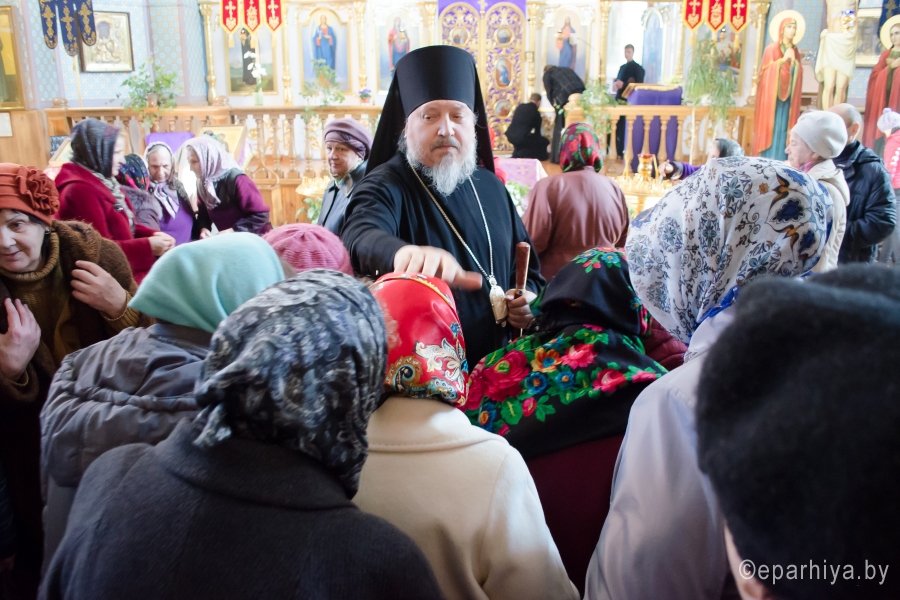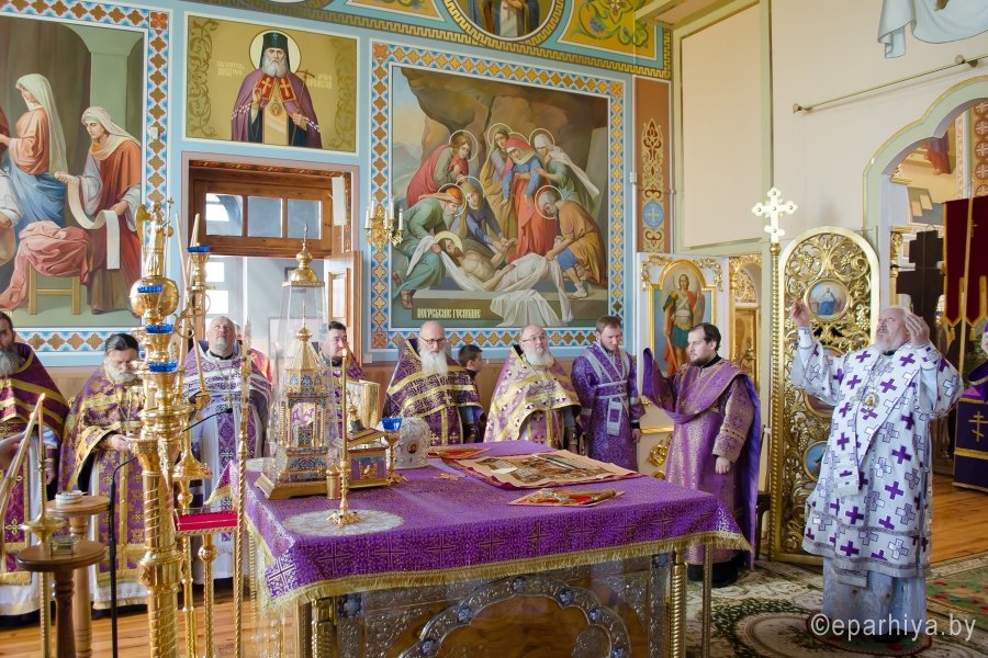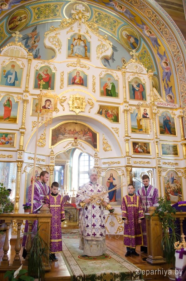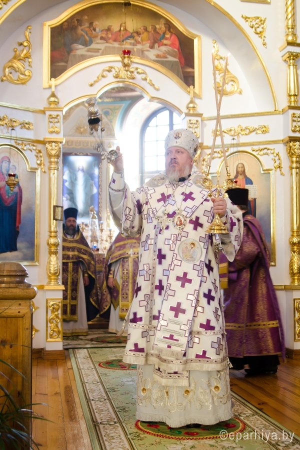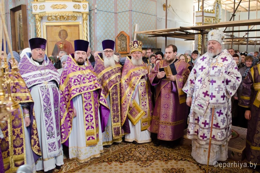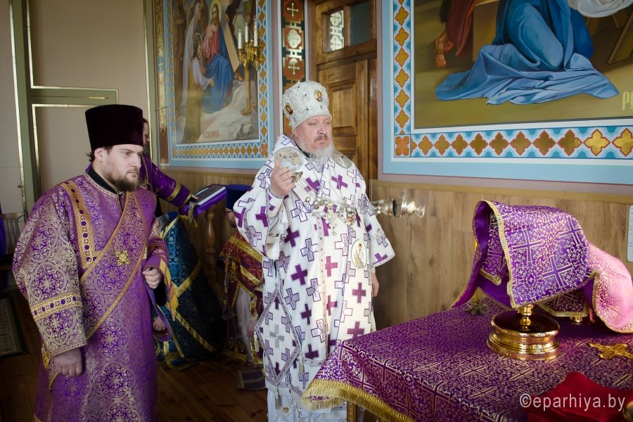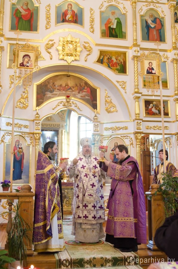 30 марта 2017г, в день памяти Алексия, человека Божиего, Преосвященный Стефан совершил Божественную литургию Преждеосвященных Даров в храме Успения Пресвятой Богородицы г. Речицы. Преосвященному сослужили: благочинный Речицкого округа протоиерей Алексей Пешко и духовенство округа. За богослужением Владыка наградил иерея Сергия Якимовича правом ношения набедренника. По окончании Литургии Владыка поздравил благочинного Речицкого округа протоиерея Алексея Пешко и настоятеля храма Богоявления Господня д.Короватичи иерея Алексея Лысикова с Днем Ангела и преподнес им в дар цветы и Святой Образ. |