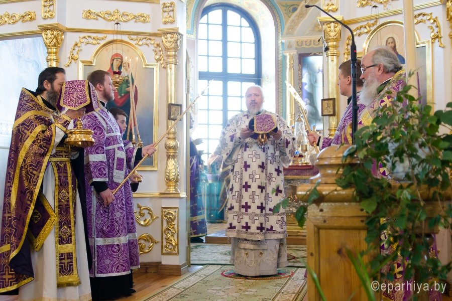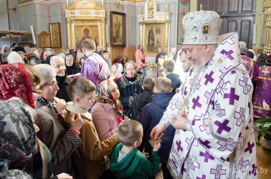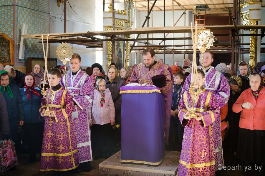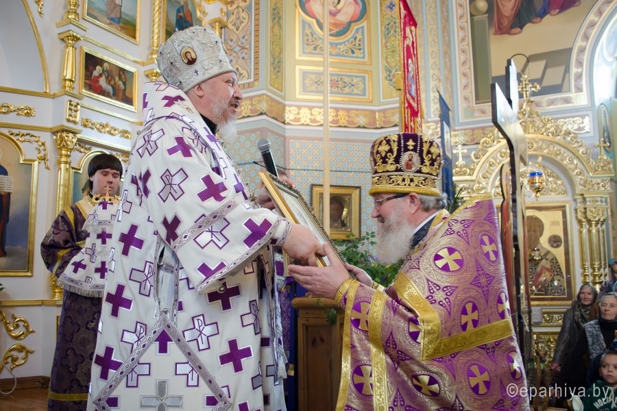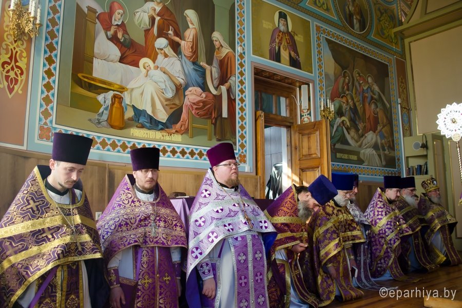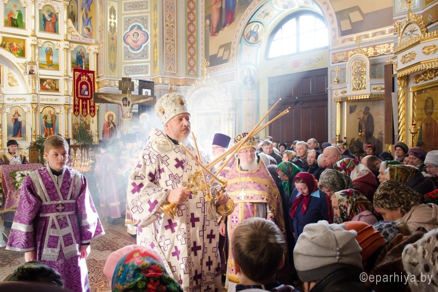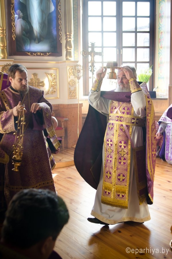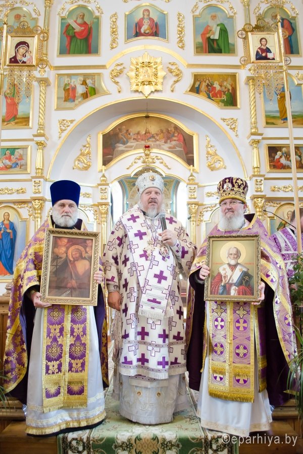 30 марта 2017г, в день памяти Алексия, человека Божиего, Преосвященный Стефан совершил Божественную литургию Преждеосвященных Даров в храме Успения Пресвятой Богородицы г. Речицы. Преосвященному сослужили: благочинный Речицкого округа протоиерей Алексей Пешко и духовенство округа. За богослужением Владыка наградил иерея Сергия Якимовича правом ношения набедренника. По окончании Литургии Владыка поздравил благочинного Речицкого округа протоиерея Алексея Пешко и настоятеля храма Богоявления Господня д.Короватичи иерея Алексея Лысикова с Днем Ангела и преподнес им в дар цветы и Святой Образ. |