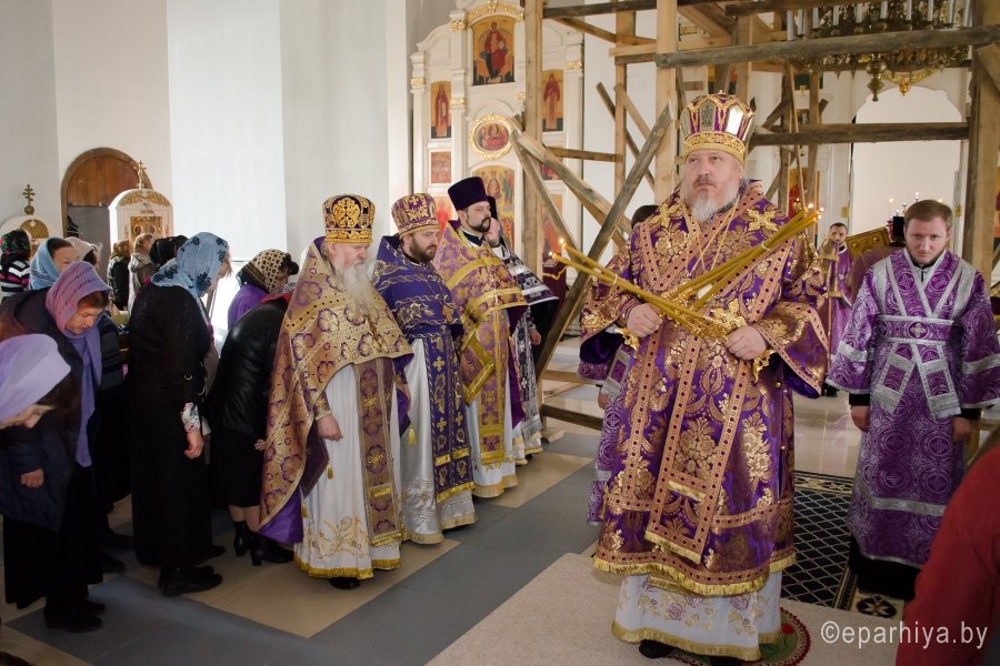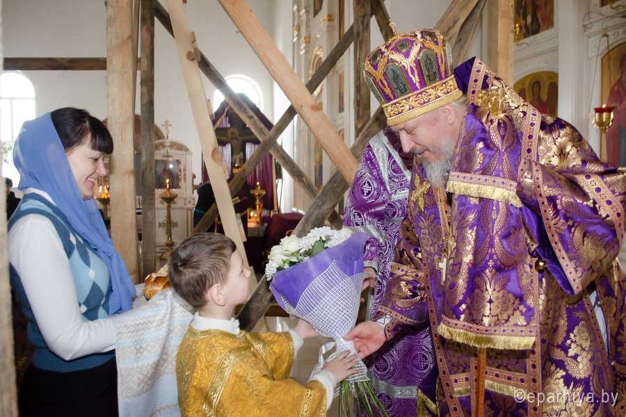 31 марта 2017г., в пятницу 5-й седмицы Великого поста, Преосвященный Стефан совершил Божественную литургию Преждеосвященных Даров в храме Рождества пресвятой Богородицы г. п. Урицкое. Преосвященному сослужили: благочинный монастырей Гомельской епархии архимандрит Амвросий (Шевцов), благочинный Гомельского районного благочинного округа протоиерей Артемий Кривицкий и духовенство округа. По окончании богослужения Владыка поздравил причастников с принятием Святых Христовых Таин и обратился к молящимся со словами Архипастырского назидания. В память об этом дне Преосвященный Стефан раздал всем присутствующим иконки. |