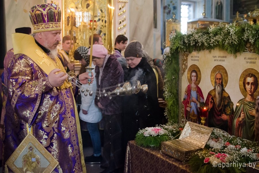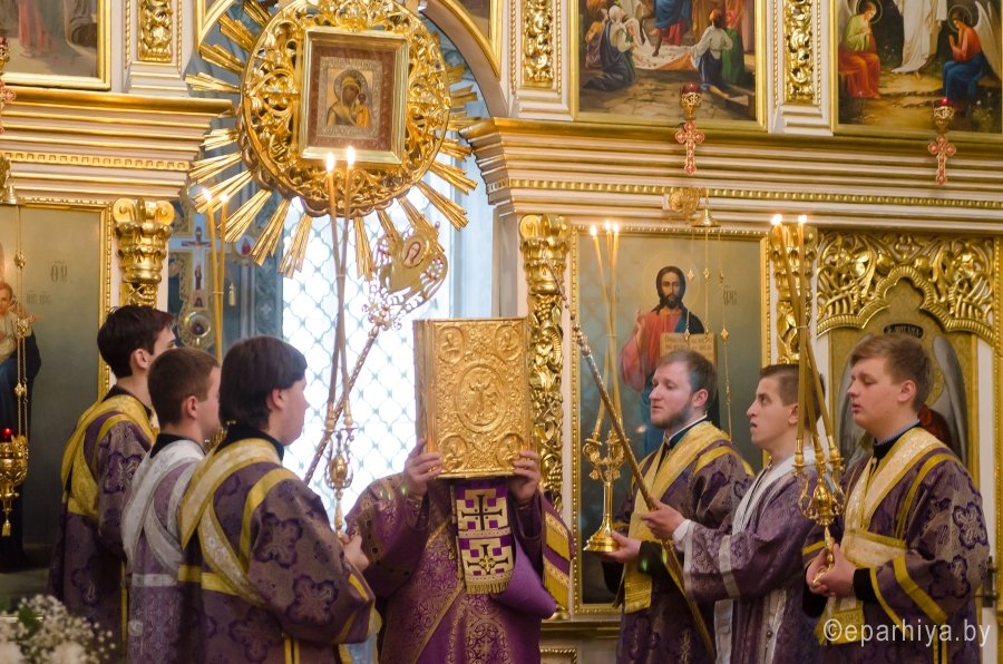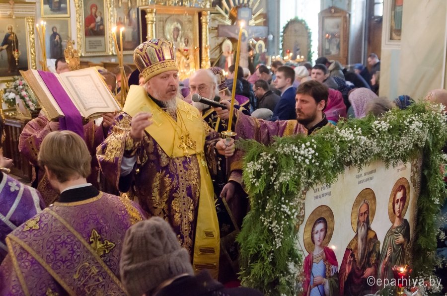 1 апреля 2017г., в канун Недели 5-й Великого поста, дня памяти прп. Марии Египетской, Преосвященный Стефан совершил всенощное бдение в Свято-Петро-Павловском кафедральном соборе г. Гомеля. Преосвященному сослужили: секретарь Гомельской епархии протоиерей Георгий Алампиев и духовенство собора. По окончании богослужения Владыка обратился к молящимся со словами Архипастырского назидания. |