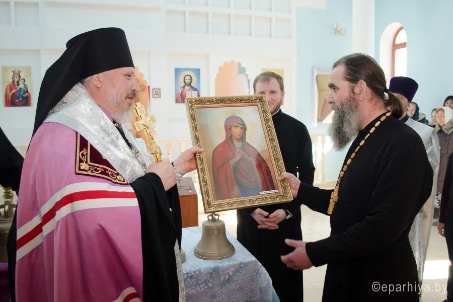 2 апреля 2017г. Преосвященный Стефан совместно с благочинным Речицкого округа протоиереем Алексеем Пешко совершил рабочую поездку в храм Казанской иконы Божией Матери, д.Милоград Речицкого округа. В ходе визита Владыка совершил чин освящения колоколов храма, а также пообщался с настоятелем и прихожанами храма. |
