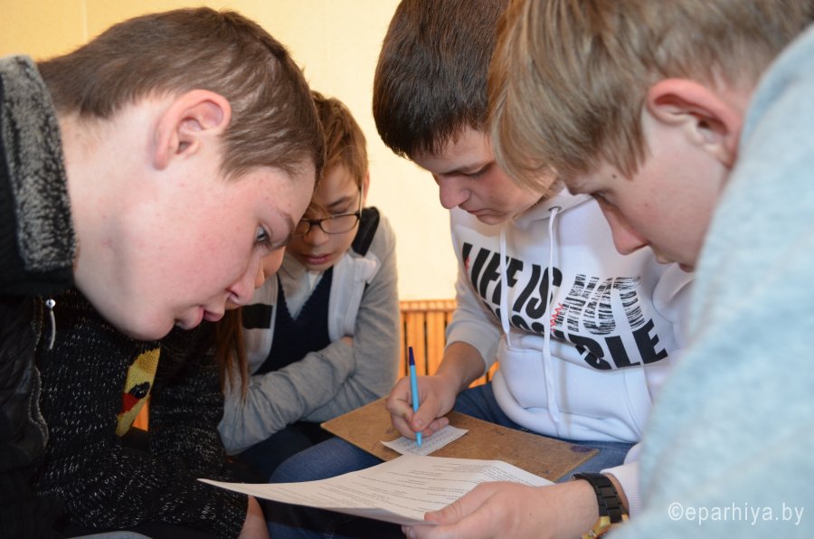 4 апреля 2017 г. в интеллектуальном клубе «Альянс» Центра творчества детей и молодежи «Ювента» прошел турнир, посвященный Светлому Христову Воскресению – Пасхе. В нем приняли участие 8 команд из нескольких учреждений образования Светлогорска. Руководитель клуба Ирина Сафонова сообщила участникам турнира, что вопросы эрудит-лото будут касаться евангельских притч, а вопросы турнира «Что? Где? Когда?» потребуют от участников логики и рассуждения. Участников турнира напутствовал благочинный Светлогорского округа, настоятель храма в честь Преображения Господня протоиерей Александр Кисель. – Сегодня вы ответите на вопросы, касающиеся Бога, Который сотворил небо и землю и нас с вами, – сказал священник. – Турнир посвящен Пасхе. Этому празднику предшествует сорокадневный строгий пост. Непосредственно перед Пасхой проходит страстная седмица, в течении которой мы вспоминаем о Срастях Христовых, как Он, истекая кровью, падая и подымаясь, понес на Голгофу тяжелый крест за наши грехи. Желаю вам, чтобы турнир послужил вашему взрослению, чтобы темы и вопросы, которые вы будете рассматривать, остались в вашем сердце, чтобы они помогли открыть ваше сердце для встречи с Богом. А Он нам всегда поможет, поможет нести наш жизненный крест. Вы же должны найти свой путь к храму, к той вере, которая веками освящала нашу жизнь. Руководитель клуба «Альянс» Ирина Сафонова объяснила участником турнира правила. Командам раздали конкурсные задания, и ребята приступили к их исполнению. После подведения итогов эрудит-лото наступил этап «Что? Где? Когда?». Ирина Викторовна задавала учащимся вопросы. Побеждал тот, кто отвечал наиболее быстро и правильно. В итоге 1-е место заняла команда Центра творчества детей и молодежи «Ювента», 2-е место завоевала команда школы №8, 3-е место досталось команде школы №3. Победителей поздравил протоиерей Александр Кисель. Он вручил участникам команд призы. |