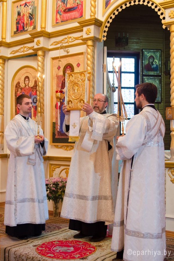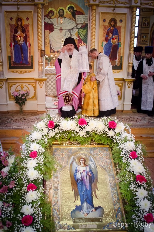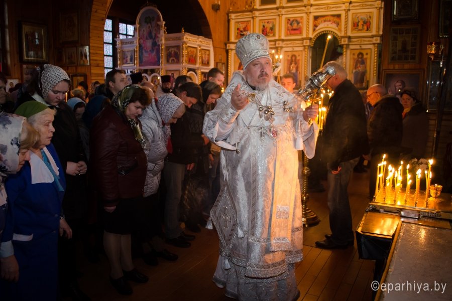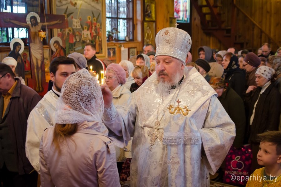 Вечером 7 апреля 2017г., в канун Собора Архангела Гавриила и Лазаревой Субботы, Преосвященный Стефан совершил всенощное бдение в храме святого Архистратига Михаила г. Гомеля. Преосвященному сослужили: секретарь Гомельской епархии протоиерей Георгий Алампиев, благочинный Гомельского городского округа протоиерей Игорь Ольшанов и духовенство храма. По окончании богослужения Владыка поздравил всех с праздником и обратился к молящимся со словами Архипастырского назидания. |