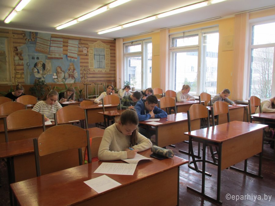 В городе Гомеле 8 апреля состоялся городской этап областной олимпиады по основам православной культуры, в которой приняли участие 84 учащихся 4-8 классов учреждений общего среднего образования города. Впервые олимпиада по основам православной культуры прошла в г.Гомеле в 2006 году и имела статус городской, а спустя десять лет олимпиада выходит на областной уровень и проходит сейчас во всех районах Гомельской области. Проведение данной олимпиады служит приобщению школьников к нашему богатейшему культурному, духовному наследию, укреплению непреходящих нравственных ценностей, а также воспитанию подрастающего поколения в духе патриотизма и гражданственности, уважения к отечественной истории, к героическим и трудовым традициям многих поколений наших предков. В торжественном открытии олимпиады, которое проходило в гостеприимных стенах ГУО «Средняя школа № 8 г.Гомеля» приняли участие: протоиерей Вадим Кочан, председатель отдела религиозного образования и катехизации, протоиерей Максим Колеватов, клирик прихода храма святого великомученика Георгия Победоносца в г.Гомеле, Н. С. Жгирова, координатор отдела по связям с общественностью Гомельской епархии, директор школы Н. Г. Дубинина и другие почётные гости и члены жюри. Со сцены звучали музыкальные приветствия от коллективов ГУО «Средняя школа № 30 г.Гомеля» и ГУО «Средняя школа №8 г.Гомеля». Олимпиада в этом году посвящена 100-летию преставления святого праведного Иоанна Кормянского и охватывала вопросы из истории Ветхого Завета (от Авраама до Синайского законодательства), Нового Завета: чудеса Иисуса Христа и вопросы по Нагорной проповеди. Результаты олимпиады будут размещены на сайте ГУО «Средняя школа № 8 г.Гомеля» 17 апреля ( school8@jdroo.by) Во втором, областном этапе олимпиады, который будет проходить в мае месяце нынешнего года в г.Гомеле(15 мая) и г.Мозыре, примут участие победители районных этапов, занявшие первые места в своей возрастной параллели (по два представителя от района). Церемония награждения победителей олимпиады пройдёт в рамках Пасхального фестиваля в г.Гомеле. |