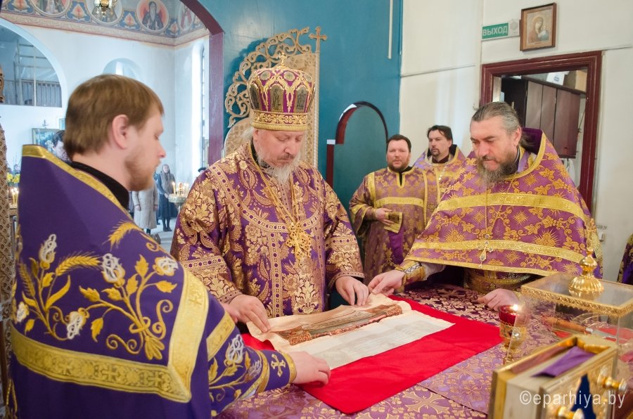 10 апреля 2017г., в Великий Понедельник, Преосвященный Стефан совершил Божественную литургию в храме св. блг. кн. Александра Невского г. Гомеля. Преосвященному сослужили: секретарь Гомельской епархии протоиерей Георгий Алампиев, благочинный Гомельского городского округа протоиерей Игорь Ольшанов, настоятель и духовенство храма. По окончании богослужения Владыка поздравил причастников с принятием Святых Христовых Таин, обратился к молящимся со словами Архипастырского назидания и ознакомился с ходом строительных работ на территории Прихода. |