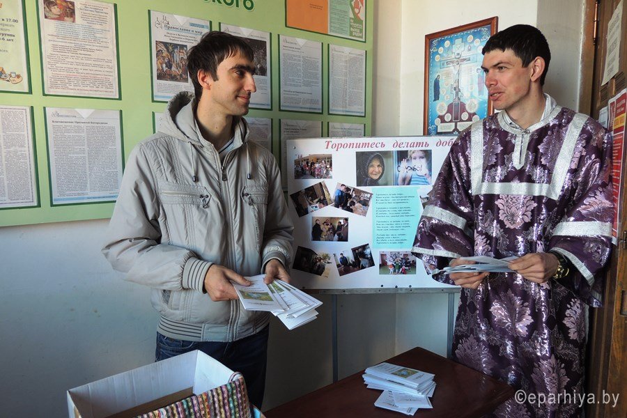 9 апреля 2017 года, в праздник Входа Господня в Иерусалим, на территории храма святого благоверного князя Александра Невского в г.Гомеле прошла благотворительная акция «Торопитесь делать добро», подготовленная молодежным активом прихода. Ребята поздравляли прихожан с праздником, а также вручали открытки и буклеты, подготовленные собственными силами. Пожертвования, собранные в этот день, будут направлены для оказания помощи нуждающимся многодетным и малообеспеченным семьям, а также инвалидам и одиноким пожилым людям. |