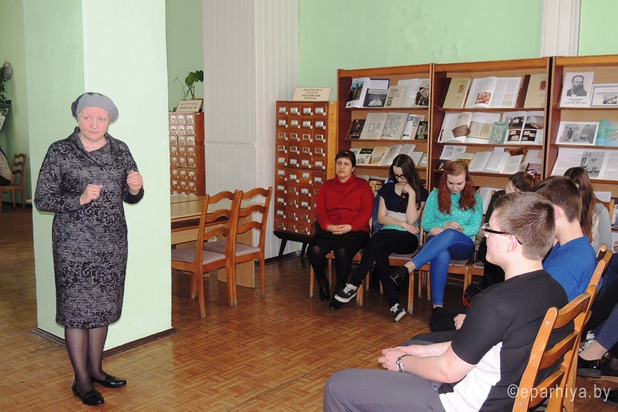 6 апреля 2017 года настоятель прихода храма святого благоверного князя Александра Невского в г.Гомеле протоиерей Владимир Силенко и преподаватель воскресной школы Игнатович И.В. посетили библиотеку-филиал № 3 им. Е.Романова, в читальном зале которой прошла духовно-нравственная беседа «Душевность и духовность» с учениками 9 класса ГУО «Средняя школа № 4 им. В.Маркелова г.Гомеля». Что такое душевность и духовность? Что мы знаем о самих себе? На эти и другие вопросы педагог дала подробные и исчерпывающее ответы. Ребята оживленно дискутировали, высказывали свое мнение, задавали вопросы. В завершение беседы протоиерей Владимир Силенко преподнес в дар библиотеке книги духовного содержания, собранные приходом в ходе благотворительной акции «Подари православную книгу», с которыми присутствующие имели возможность ознакомиться после беседы. |