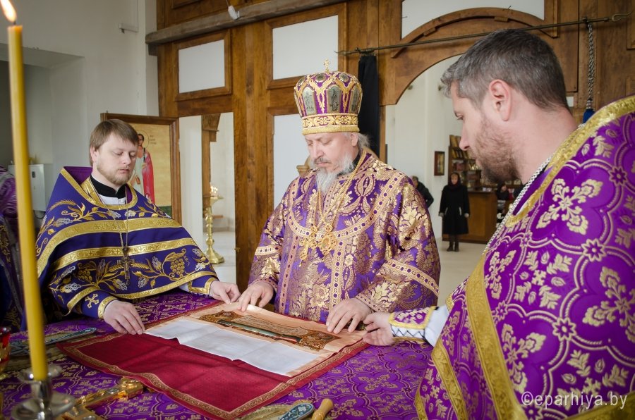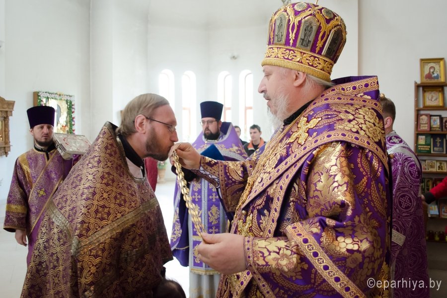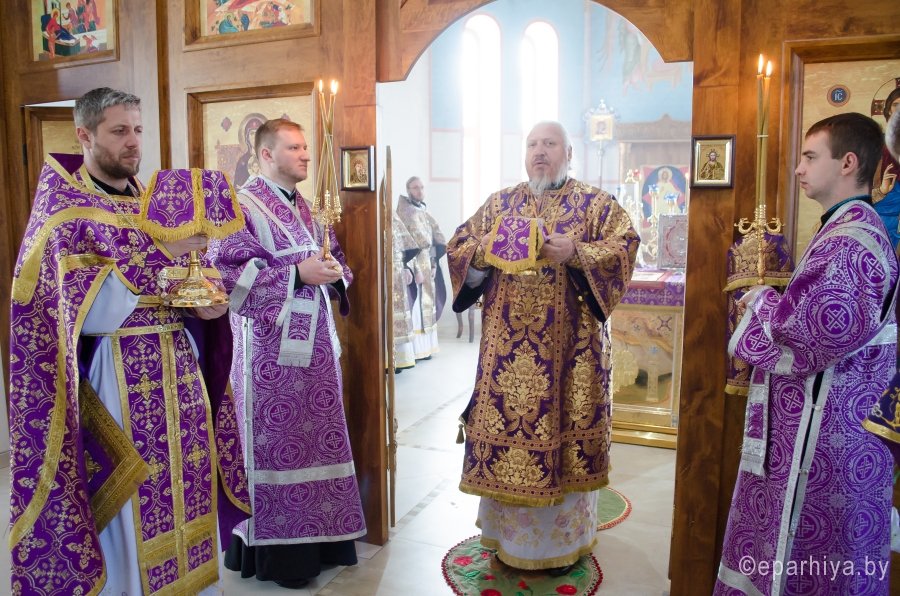 12 апреля 2017г., в Великую Среду, Преосвященный Стефан, совершил Божественную литургию в храме иконы Божией Матери "Грузинская" г. Гомеля. Преосвященному сослужили: секретарь Гомельской епархии протоиерей Георгий Алампиев, благочинный Гомельского городского округа протоиерей Игорь Ольшанов, настоятель и духовенство храма. За богослужением Владыка возвел в сан протоиерея клирика храма святого великомученика и целителя Пантелеимона в г. Гомеле иерея Сергия Сидоровича. Иерей Сергий Зарубин и иерей Виктор Бутьковец были удостоены правом ношения наперсного креста. По окончании Литургии Преосвященный Стефан поздравил причастников с приннятием Святых Христовых Таин и обратился к молящимся со словами Архипастырского назидания. В память об этом дне Владыка раздал всем присутствующим иконки. |