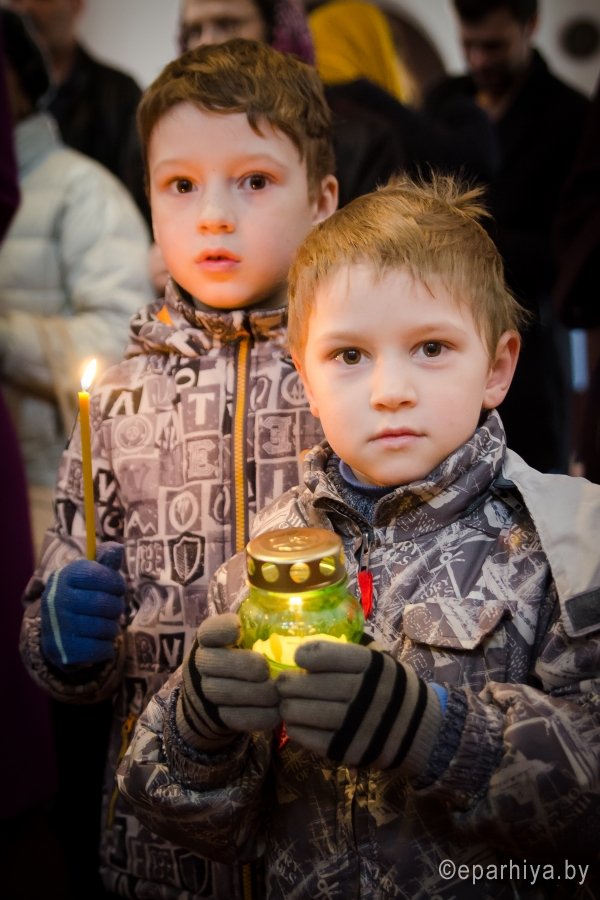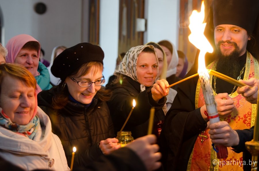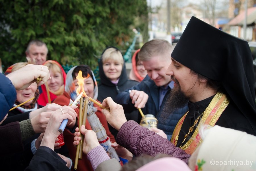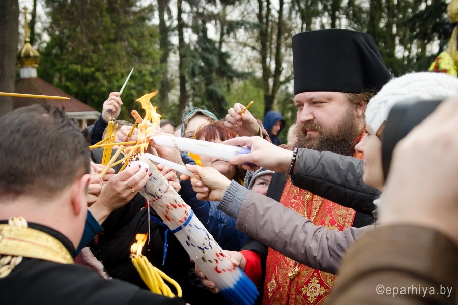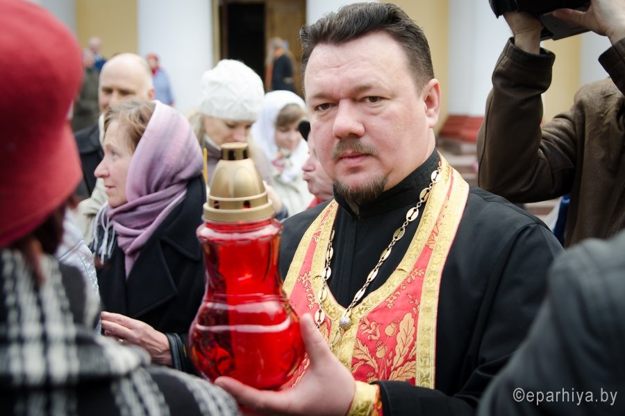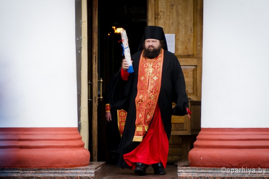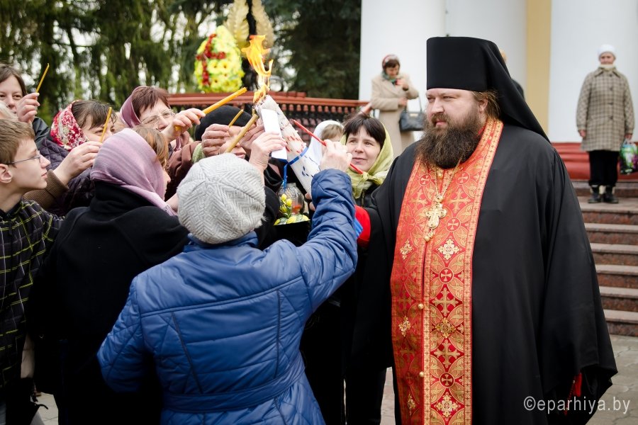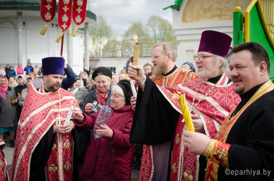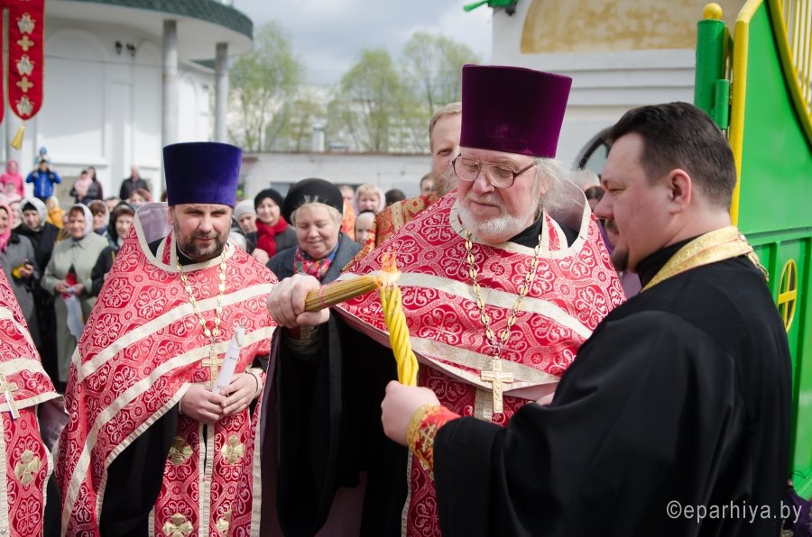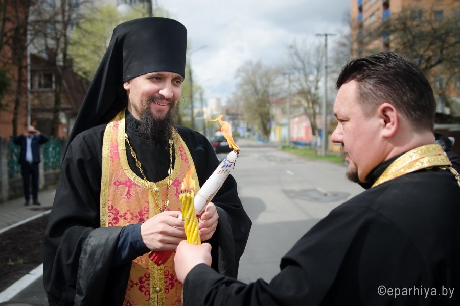 В храмы Гомеля в сопровождении звонницы с крестным ходом был доставлен Благодатный Огонь