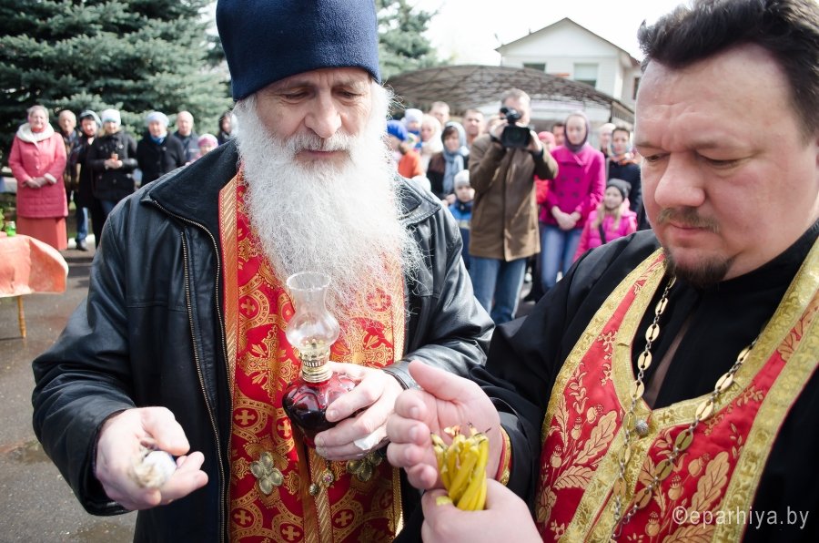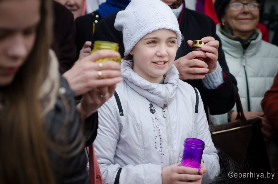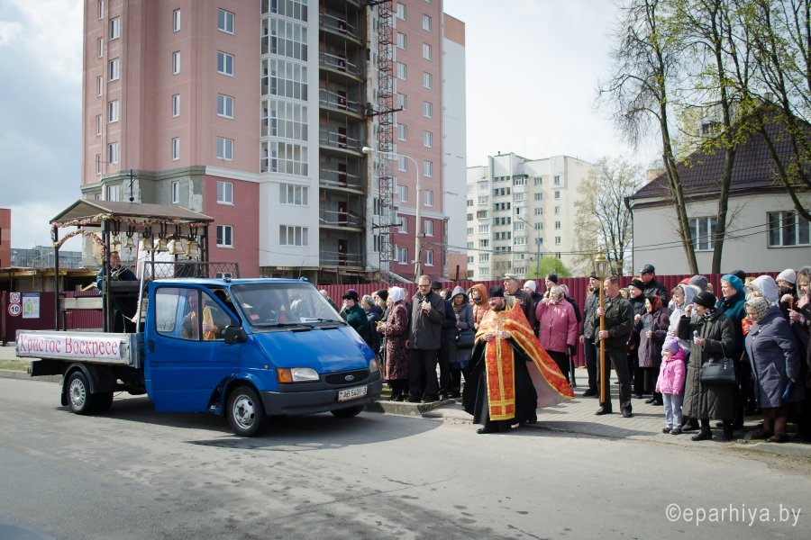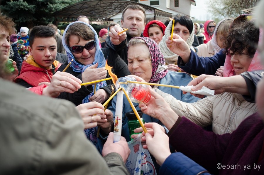 В Пасхальную ночь с 15 на 16 апреля 2017г. в Гомель из Иерусалима был доставлен благодатный огонь. А утром, в праздник Светлого Христова Воскресения, при многочисленном стечении народа, в храмы Гомеля в сопровождении звонницы Спасо-Преображенского храма г. Гомеля с крестным ходом был доставлен Благодатный Огонь. Шествие благодатного огня началось с кафедрального Свято-Петро-Павловского собора. По благословению Преосвященного Стефана благочинный монастырей Гомельской епархии архимандрит Амвросий (Шевцов) прямо на ступеньках собора передал Благодатный огонь представителям духовенства, которые сопровождали передвижную звонницу. Звонарями были: Антон Кострома и Павел Потапенко. В ходе Крестного хода со святыней, переливчатый звон колоколов разносил благую весть о Воскресении Господнем, заполнял собой улицы и сердца людей. У храмов Благодатный Огонь встречали как духовенство, так и прихожане. |