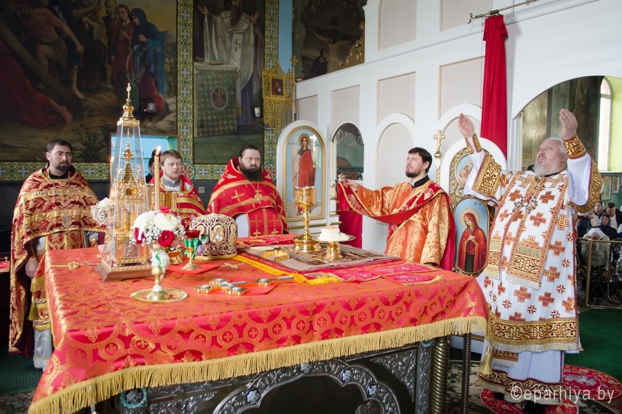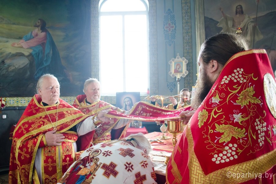 17 апреля 2017г., в понедельник Светлой седмицы, Преосвященный Стефан совершил Божественную литургию в храме Святой Живоначальной Троицы г. Жлобина. Преосвященному сослужили: секретарь Гомельской епархии протоиерей Георгий Алампиев, благочинный монастырей Гомельской епархии архимандрит Амвросий (Шевцов), благочинный Жлобинского округа протоиерей Василий Пилипенко и духовенство округа. По окончании богослужения Владыка поздравил присутствующих со Светлым праздником Воскресения Господня и обратился со словами Архипастырского назидания. В память об этом дне Владыка раздал всем иконки. |