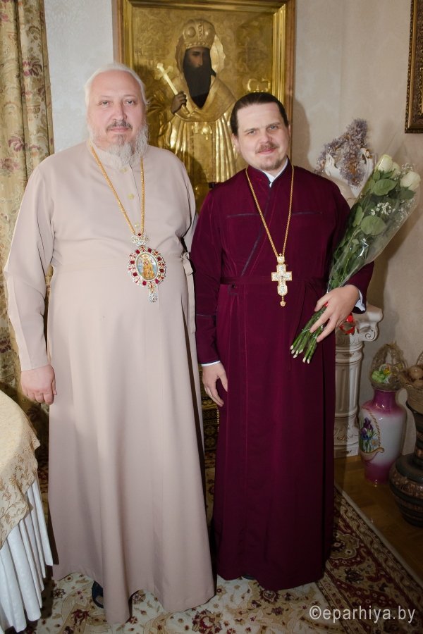 17 апреля 2017г. Преосвященный Стефан поздравил с Днем рождения настоятеля храма иконы Божией Матери "Всех скорбящих Радость" г. Гомеля, Председателя Отдела религиозного образования и катехизации Гомелькой епархии протоиерея Вадима Кочана. Преосвященный Владыка преподнес в дар священнику наперсный крест и цветы. |