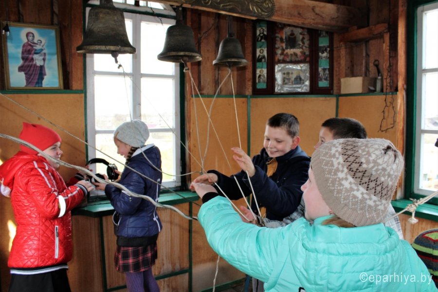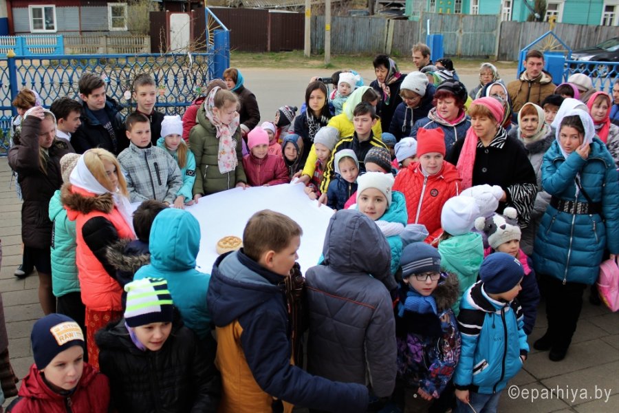 17 апреля в приходе храма святого благоверного князя Александра Невского в г. Рогачёве состоялось Пасхальное богослужение для детей. По доброй традиции в этот день в храме собираются и самые юные прихожане, которые не смогли присутствовать на ночной литургии, и учащиеся воскресной школы, и воспитанники яслей - сада №7, и «взрослые дети» из центра дневного пребывания для инвалидов. По окончании богослужения настоятель прихода протоиерей Алексей Смотрицкий торжественно вручил выпускникам Левкову Николаю и Малашуку Артемию свидетельства об окончании воскресной школы. Затем был совершен Крестный ход. Под радостный звон колоколов (а попробовать себя в качестве звонаря хотел каждый), несмотря на холод, участвовали в эстафетах и катании яиц, своими руками изготавливали пасхальные сувениры для родных. |