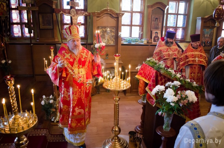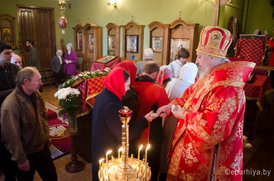 19 апреля 2017г., в среду Светлой седмицы, преосвященный Стефан совершил Божественную литургию в храме иконы Божией Матери "Всех скорбящих Радость" г. Гомеля. Преосвященному сослужили: благочинный Гомельского городского округа протоиерей Игорь Ольшанов, настоятель и духовенство храма. По окончании богослужения Владыка возглавил Крестный ход, поздравил причастников с принятием Святых Христовых Таин и обратился со словами Архипастырского назидания. В память об этом дне Преосвященный раздал всем присутствующим иконки. |