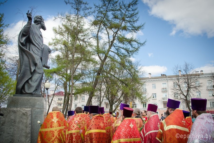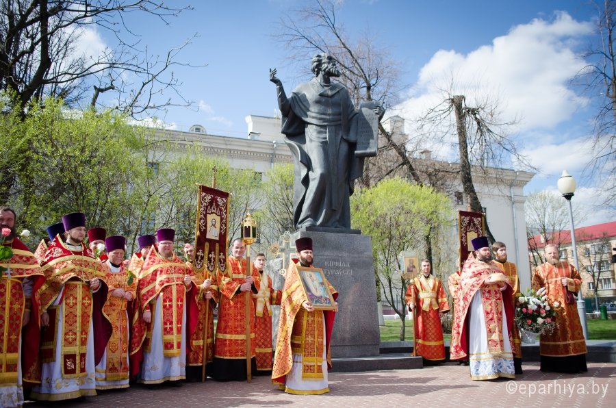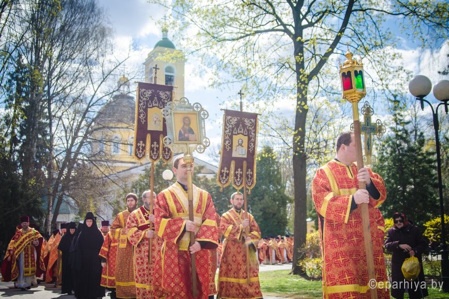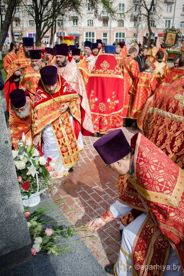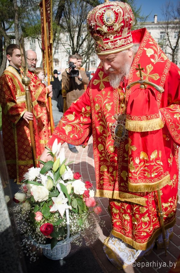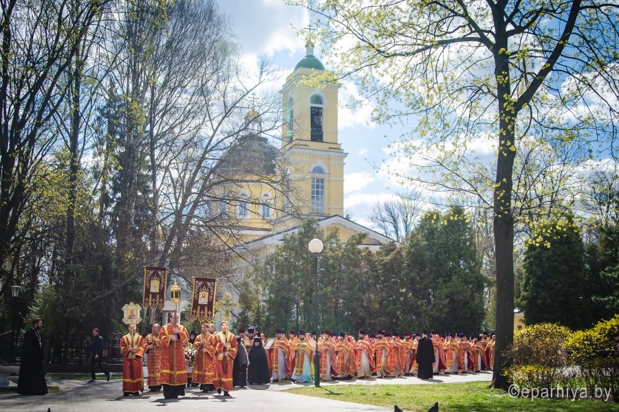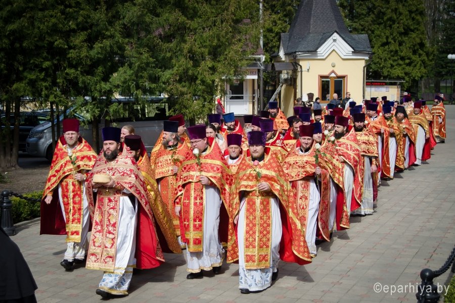 20 апреля 2017г. в Свято-Петро-Павловском кафедральном соборе Преосвященный Стефан, епископ Гомельский и Жлобинский возглавил соборное богослужение духовенства Гомельской епархии. Более 150 священнослужителей четвертый год подряд собираются под сводами Свято-Петро-Павловского кафедрального собора в Светлую седмицу, чтобы в совместной молитве отметить праздник Светлого Христова Воскресения. По запричастном стихе со словами проповеди к молящимся обратился клирик Свято-Петро-Павловского кафедрального собора г. Гомеля иеромонах Аристарх (Дроздов). За богослужением молились настоятельница Свято-Успенского женского монастыря д. Казимирово игуменья Иоанна с сестрами, настоятельница Свято-Тихвинского женского монастыря игуменья Вера с сестрами и сестры Свято-Иоанно-Кормянского женского монастыря. В завершении богослужения духовенство и верующие приняли участие в многочисленном Крестном ходе, который уже на протяжении 7 лет проходит в епархии на Светлой седмице, к памятнику Кирилла Туровского – святителю, внесшему бесценный вклад в культуру и дух единства всех восточных славян. Для Гомельского региона имя этого святого имеет особое значение. Благодарные потомки бережно хранят память святителя, прославленного писателя и проповедника. В его честь устанавливаются памятники, возводятся храмы. Преосвященный Стефан и священнослужители возложили цветы к памятнику, тем самым почтили светлую память святителя, оставившего неизгладимый след в истории народа и жизни церкви. |