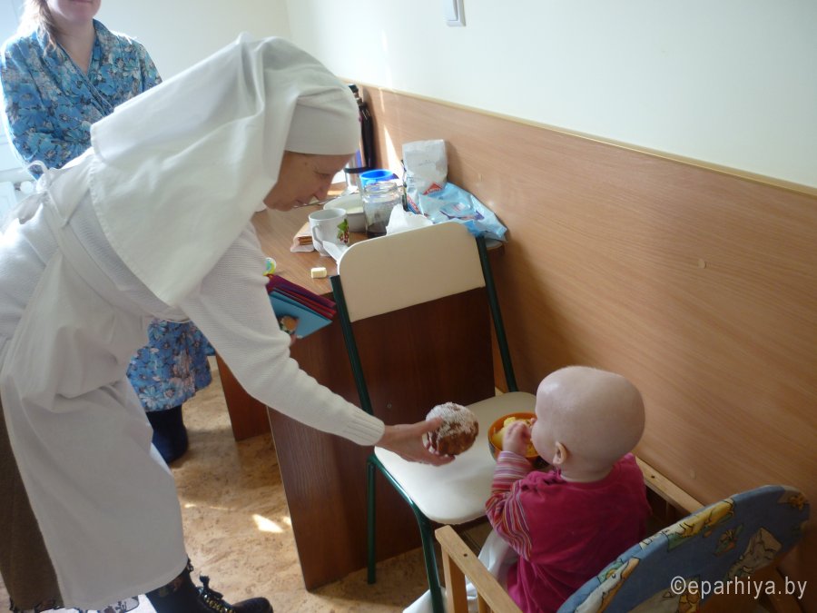 Пасха – это воскресение Христово, главный праздник церковного года. Мы празднуем победу Христа над главными врагами человечества: над грехом и смертью. В этот день нужно дарить радость окружающим. Пасха приходится на весну, время новых ожиданий, возрождения природы и долгожданных солнечных дней. Праздник радостный по своей сути, поэтому принято встречать его красиво и со вкусом: готовить особенные угощения, убирать и украшать дом, дарить друг другу подарки. Пасха – это замечательный праздник, когда за щедрым столом собирается вся семья, родственники, близкие друзья. Во время праздника царит особая, добрая, милосердная обстановка. Но не все смогут встретить Воскресение христово в кругу семьи, так как обстоятельства и состояние здоровья вынуждают находиться в больнице, вдали от дома. Сразу после встречи Пасхи, которая в этом году выпала на 16 апреля, десятки сестер милосердия и добровольцев вместе со священниками отправляются поздравлять подопечных со светлым Христовым Воскресением. По традиции мы дарим пасхальные открытки, куличи, сладости и ,конечно, освященные пасхальные яйца. Наша цель – порадовать и поддержать страждущих, и, конечно, всем добрым христианам дать возможность подготовить свою душу к встрече с Воскресшим Господом не только постом, но и делами милосердия. Сестры сестричества во имя святой великомученицы Варвары при Александро-Невском храме г.Гомеля также отправились поздравлять с Праздником пациентов Республиканского центра радиационной медицины. Всего в рамках акции "Кулич в ладошке" пасхальные яйца и куличи, а также сладости получили около 150 болящих из разных отделений больницы. Также была проведена традиционная акция "Дети поздравляют детей". Кружок по интересам "Ангел" при ГУО "Средняя школа №15 г.Гомеля", в котором занимаются учащиеся 1-2 классов, вручную изготовили около 40 пасхальных открыток и передали их сестричеству для вручения. Сестры желали нашим пациентам, чтобы свет Христов, озаряющий всякого человека, пришедшего в мир, согревал сердца, а будущее стало светлым и чистым. |