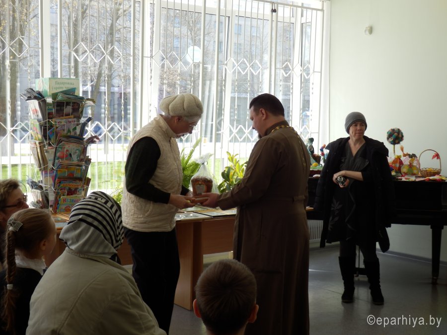 По благословению Преосвященнейшего Стефана, епископа Гомельского и Жлобинского 20 апреля 2017 года в четверг Светлой седмицы Отделом социального служения и церковной благотворительности епархии вместе с библиотекой-филиалом №1 им. И.Мележа ГУ «Сеть публичных библиотек г.Гомеля» и совместно с учреждением «Гомельский городской центр социального обслуживания семьи и детей» подведены итоги выставки-конкурса семейного творчества «Пасхальная радость». В выставке-конкурсе приняли участие 113 человек. Среди творческих поделок семейные работы, детские, работы творческих женщин пенсионного возраста. Были представлены вышивка икон взрослыми и детьми, рисунки, бисероплетение и другие техники исполнения. Протоиерей Александр Цуканов, клирик храма Преображения Господня в г.Гомеле вручил всем взрослым участницам и молодым участникам, чьи работы были отмечены, как творческие и оригинальные, иконы. Всем детям-участникам были вручены молитвословы, детские книги и другие церковные подарки. Вручение проходило после просмотра праздничного концерта в честь праздника ПАСХИ в здании библиотеки им. И.Мележа. Организатор выставки, библиотекарь Елена Михайловна Гордеева при подведении итогов отметила: «Убеждена, что эта выставка, которая проводится уже четвертый год, востребована людьми. И это является стимулом для дальнейшего сотрудничества». Необходимо отметить, что конкурс-выставка семейного творчества «Пасхальная радость» показал много интересных, эстетических работ семейного и детского творчества. |