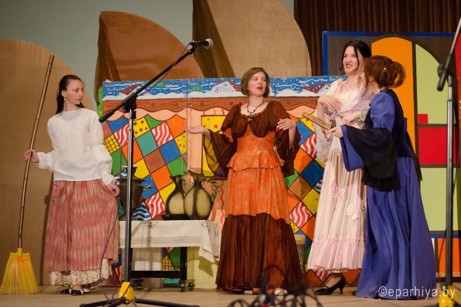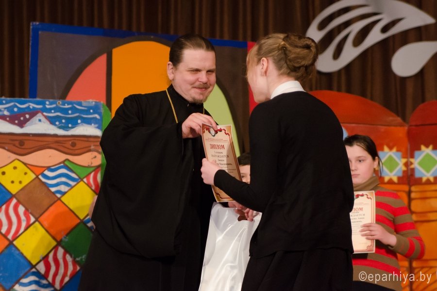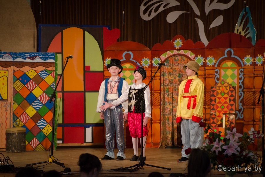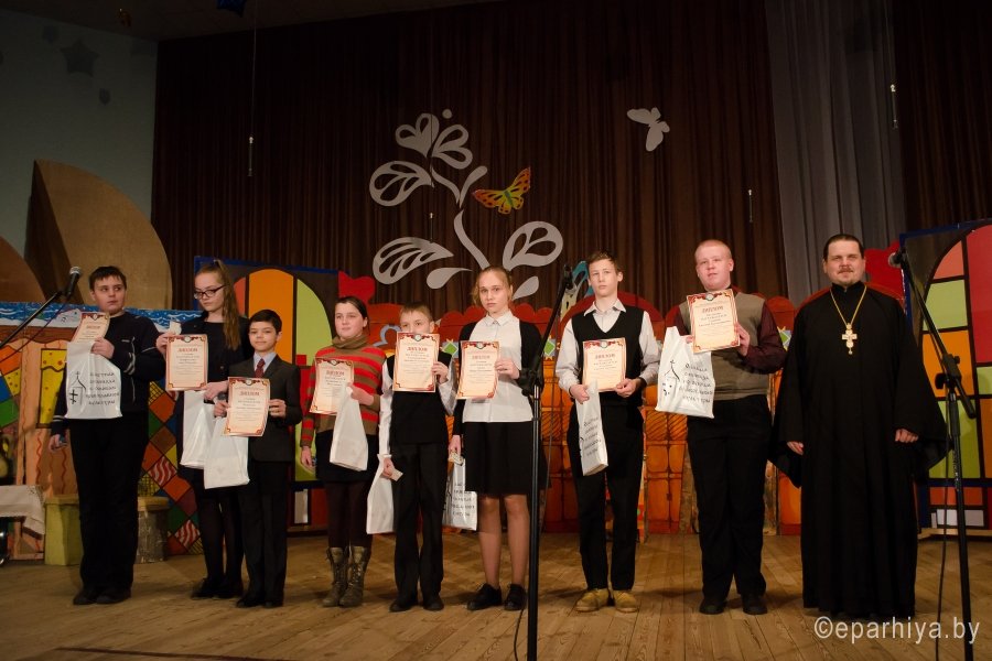 В эти светлые пасхальные дни поделиться радостью Светлого Праздника и прославить своим творчеством Воскресшего Спасителя собрались в большом концертном зале ГУО «Средняя школа № 67 г.Гомеля» воспитанники воскресных школ Гомельской епархии, учащиеся общеобразовательных школ и их родители. Пасхальное представление, ставшее традиционным, вот уже который год собирает самую благодатную публику от мала до велика. Своим творчеством на этот раз зрителей порадовали воспитанники воскресных школ: Свято-Петро-Павловского кафедрального собора в г.Гомеле, прихода храма Иверской иконы Божией Матери в г. Гомеле, прихода храма Казанской иконы Божией Матери в а.г. Мичуринское. Замечательные музыкальные композиции звучали со сцены в исполнении образцового ансамбля скрипачей «Визави» ГУО «Средняя школа № 67 г.Гомеля», Детской школы искусств № 5 г.Гомеля, вокальной образцовой студии «Серпантин» средней школы № 53. В праздничном мероприятии принял участие епископ Гомельский и Жлобинский Стефан, который вручил дипломы и памятные подарки от Гомельской епархии победителям епархиального конкурса «Моя любимая книга». Слова поздравлений звучали в этот день и для победителей городского этапа областной олимпиады по основам православной культуры, которая ежегодно проходит в рамках Пасхального фестиваля. Добрым и поучительным продолжением концерта стало красочное театрализованное представление «Золушка», подготовленное стараниями и трудами преподавателей и ребят из воскресной школы прихода храма Иверской иконы Божией Матери. Весёлые танцы, замечательные песни, проникновенная игра юных артистов, радостно сияющие лица детей, нарядные и яркие костюмы и декорации создавали атмосферу праздника, наполнили сердца зрителей теплом и светлой радостью. В качестве приглашённых гостей в зале присутсвовали ребята из центра социального обслуживания населения Железнодорожного района г.Гомеля и общества инвалидов по зрению, которым тоже были вручены от Гомельской епархии пасхальные сувениры. |