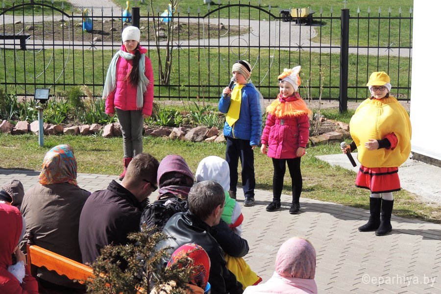 23 апреля 2017 года на территории храма святого благоверного князя Александра Невского в г.Гомеле состоялся благотворительный концерт «Пасхальный букет». Открывая праздничное мероприятие, к присутствующим обратился настоятель храма протоиерей Владимир Силенко. Священник поздравил присутствующих с праздником Светлого Христова Воскресения и пожелал всем радости, добра, мира, а главное – помощи Божией во всех жизненных начинаниях. В мероприятии приняли участие учащиеся и педагоги ГУО «Средняя школа № 15 г.Гомеля» и ГУО «Средняя школа № 41 г.Гомеля». Ребята пели, танцевали, рассказывали стихотворения. Для гостей праздника была организована тематическая зона «Пасхальные традиции», мини-площадка «Рисуем вместе», а также сладкий стол, где можно было подкрепиться чаем с печеньем и конфетами. В завершение мероприятия протоиерей Владимир Силенко вручил всем присутствующим на празднике ребятам сладкие подарки. Пожертвования, собранные в этот день, будут направлены для оказания помощи нуждающимся семьям. |