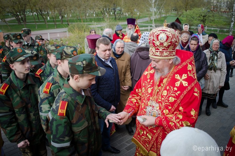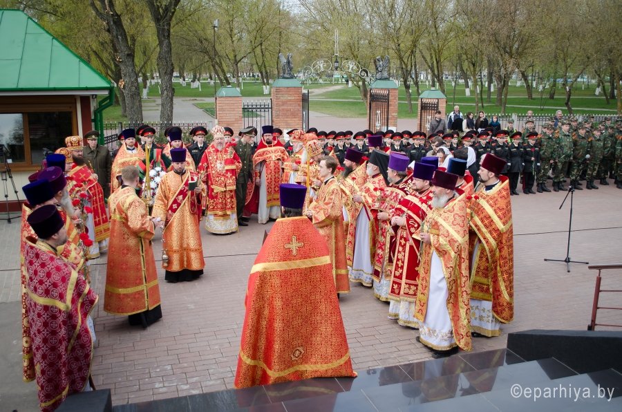 26 апреля 2017 года, в годовщину аварии на Чернобыльской АЭС, Преосвященный Стефан совершил Божественную литургию в храме святого Архангела Михаила в г. Гомеле. Преосвященнейшему сослужили: секретарь Гомельской епархии протоиерей Георгий Алампиев, благочинный монастырей Гомельской епархии архимандрит Амвросий (Шевцов), благочинный церквей Гомельского районного округа протоиерей Артемий Кривицкий, благочинный церквей Гомельского городского округа протоиерей Игорь Ольшанов, настоятели приходов г. Гомеля и духовенство епархии. Такое место выбрано неслучайно, ведь церковь святого Архангела Михаила – храм-памятник жертвам Чернобыля, перенесенный из выселенной зоны в 2006 году силами личного состава Гомельского инженерного института МЧС Республики Беларусь является символом гордости за проделанную работу, а также трагическим напоминанием ныне живущим о событиях тех дней. За Божественной литургией Владыка вознёс молитву об упокоении почивших и здравии пострадавших в результате катастрофы на Чернобыльской АЭС. По сложившейся традиции ежегодно в годовщину аварии на Чернобыльской АЭС у церкви святого Архангела Михаила проходит митинг и панихида. Панихиду о погибших героях возглавил епископ Гомельский и Жлобинский Стефан, после чего собравшиеся к памятнику возложили цветы и лампады. В митинге приняли участие представители Гомельского областного управления МЧС Республики Беларусь и кадеты ГУО "Лицей при Гомельском инженерном институте". По окончании богослужения Владыка возглавил собрание настоятелей приходов г. Гомеля. В ходе собрания обсуждались организационные вопросы по проведению торжеств в честь 100-летия со дня преставления св. прав. Иоанна Кормянского, которые состоятся 31 мая в Свято-Иоанно-Кормянском женском монастыре аг. Корма. Также обсуждались мероприятия, которые пройдут 13 июня 2017г. на месте разрушенного Макариевского монастыря, где в этот день состоится торжественное соборное богослужение духовенства Гомельской епархии. |