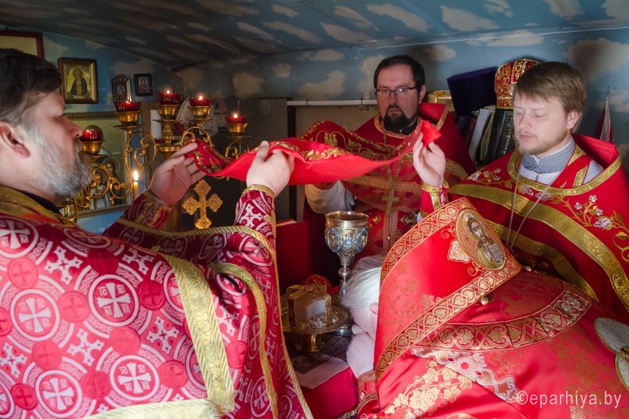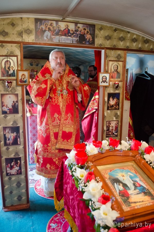 29 апреля 2017г., в субботу 2-й седмицы по Пасхе, Преосвященный Стефан совершил Божественную литургию в приходе святых мучениц Веры, Надежды, Любови и матери их Софии д. Новая Жизнь. Преосвященному сослужили: секретарь Гомельской епархии протоиерей Георгий Алампиев, благочинный Гомельского городского округа протоиерей Игорь Ольшанов и духовенство храма. По окончании богослужения Владыка ознакомился с ходом строительных работ на приходе, поздравил причастников с принятием Святых Христовых Таин и обратился к молящимся со словами Архипастырского назидания. В память об этом дне Преосвященный Стефан раздал всем присутствующим иконки. По благословению Преосвященного владыки выделены средства для скорейшего строительства криптового храма прихода. |
