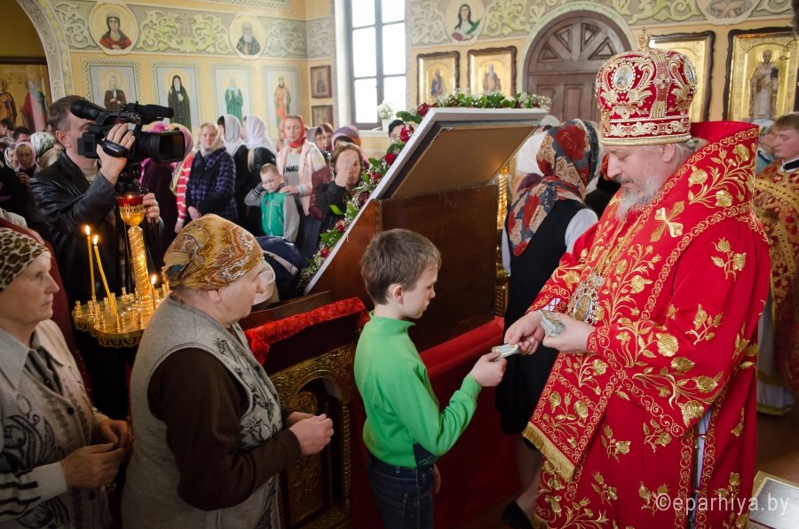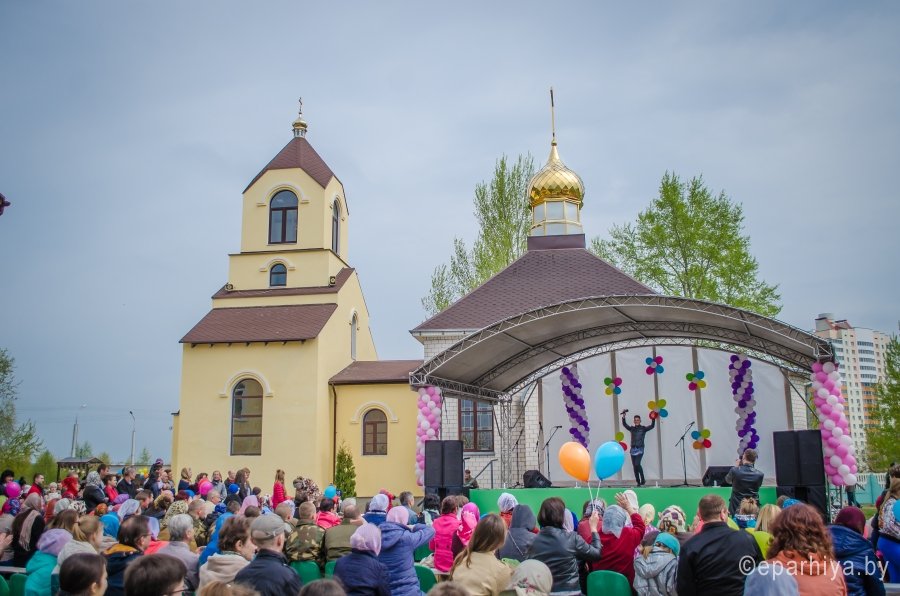 30 апреля 2017г., во дворе Спасо-Преображенского храма г.Гомеля с самого утра царила праздничная и торжественная обстановка, ведь сегодня, в третью неделю после пасхи, празднуется великий праздник – День жен-мироносиц. «Кто они, святые жены-мироносицы — это Мария Магдалина, Мария Клеопова, Саломия, Иоанна, Марфа, Мария, Сусанна, которые давали кров Иисусу во время его странствий на пути в Иерусалим. Они шли за ним и слушали его проповеди. Эти женщины видели распятие Христа и его могилу. И воскресший Господь сперва явился женщине – мироносице – Марии Магдалине. Считается, что любая женщина должна быть мироносицей. Ее высокая цель – нести в дом мир и тепло. Примерная мать, хорошая жена, покорная дочь своих родителей – таков идеал женщины». Уже двенадцатый год силами прихожан и молодёжной группы храма в этот торжественный день устраиваются различные мероприятия, для того, чтобы каждый, от мала до велика, смог отметить этот день в кругу верующих. Божественную литургию в этот день возглавил епископ Гомельский и Жлобинский Стефан в сослужении секретаря Гомельской епархии протоиерея Георгия Алампиева, благочинного Гомельского городского округа протоиерея Игоря Ольшанова, настоятеля и духовенства храма. в память об этом дне Владыка вручил труженицам, несущим послушания в храме цветы, а всем присутствующим раздал иконки. Во дворе храма была организованна концертная программа с участием знаменитых исполнителей не только города, но и всей Беларуси. Во время концерта, с поздравительным словом к присутствующим обратился Владыка Стефан. Он поблагодарил группу храма за проделанную работу, поздравил всех пришедших с праздником. После, состоялось торжественное награждение призеров пасхальных конкурсов «Пасхальный сувенир для благотворительной ярмарки» и «Пасхальный открытка». В концерте также приняли участие: творческие коллективы ясли-сада №170, ГУО «Дошкольный центр развития ребенка «Колокольчик», средних школ №66 и №27, а также, дуэт «Не Боян style» солист группы «DACK JANIELS» Женя Зайцев., а также белорусский певец Иван Буслай. |