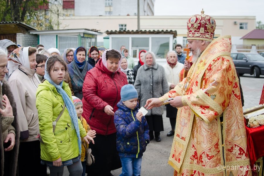 2 мая 2017г., в день памяти блж. Матроны Московской, Преосвященнейший Стефан возглавил Божественную литургию в одноименном храме Свято-Тихвинского женского монастыря г.Гомеля. Преосвященному сослужили: благочинный монастырей Гомельской епархии архимандрит Амвросий(Шевцов) и духовенство епархии. По окончании богослужения Владыка возглавил Крестный ход, поздравил духовенство и прихожан с престольным праздником и обратился к молящимся со словами Архипастырского назидания. В память об этом дне Преосвященный Стефан раздал всем присутствующим иконки. |