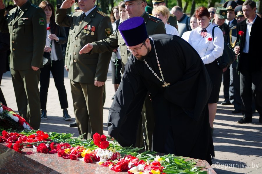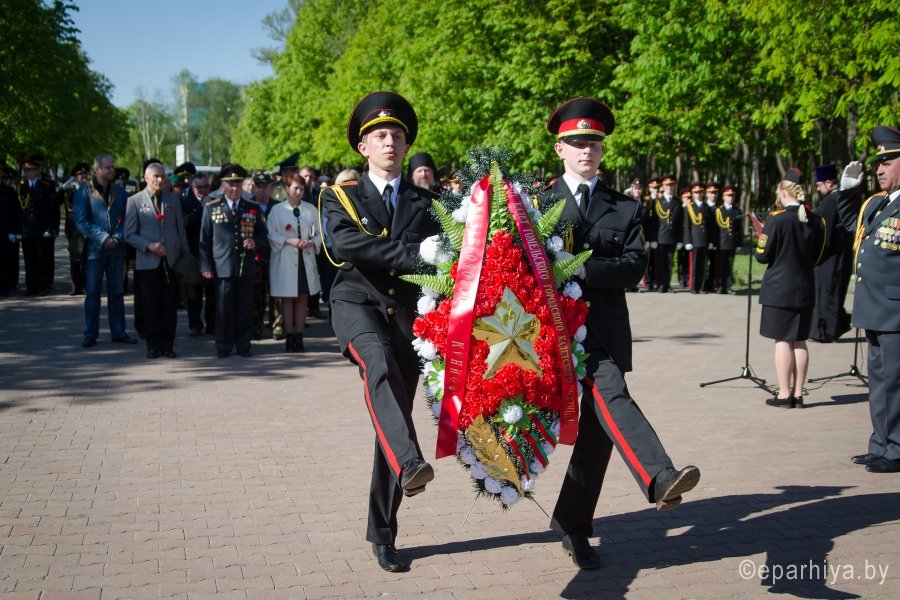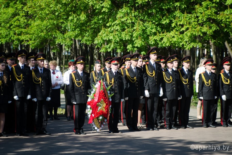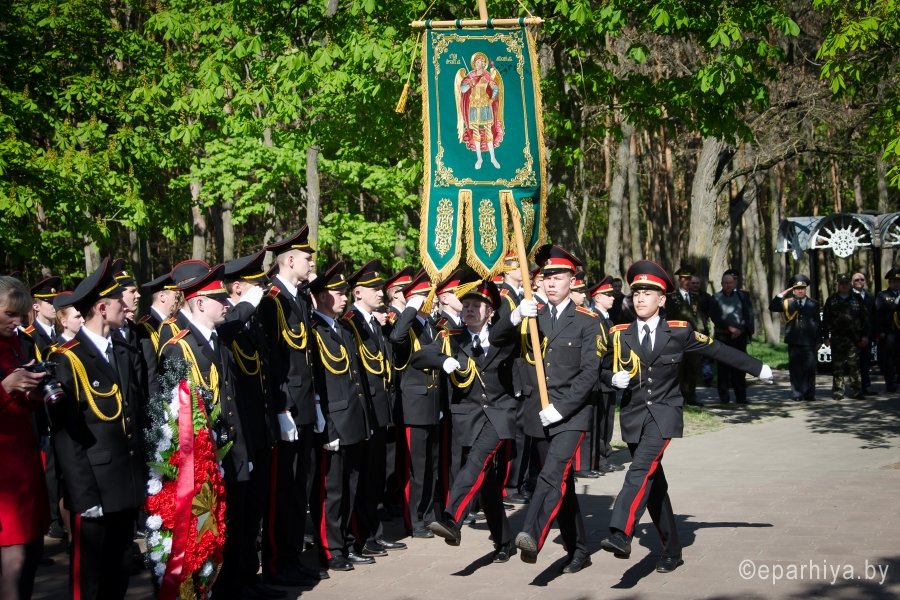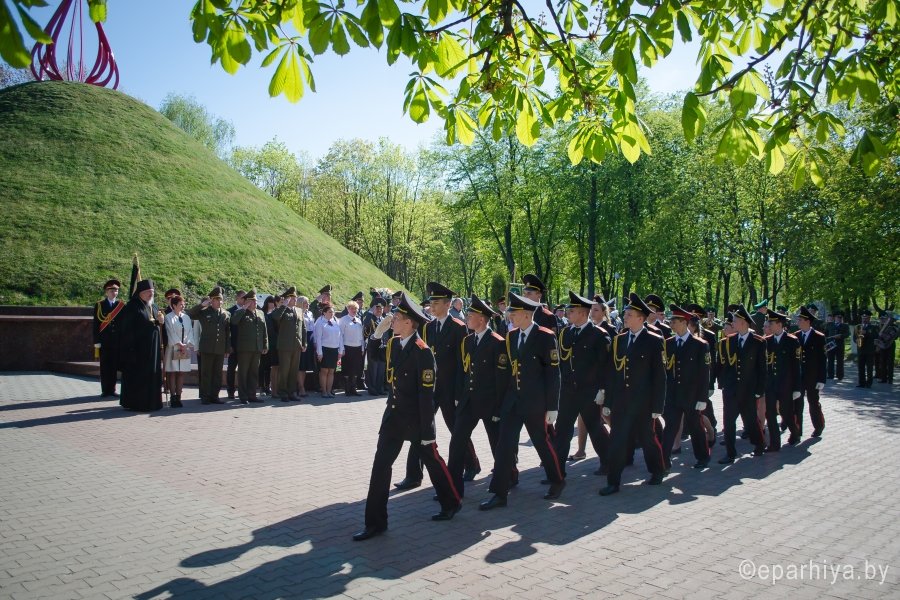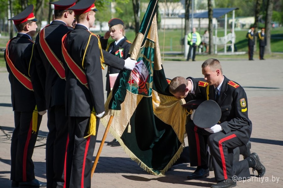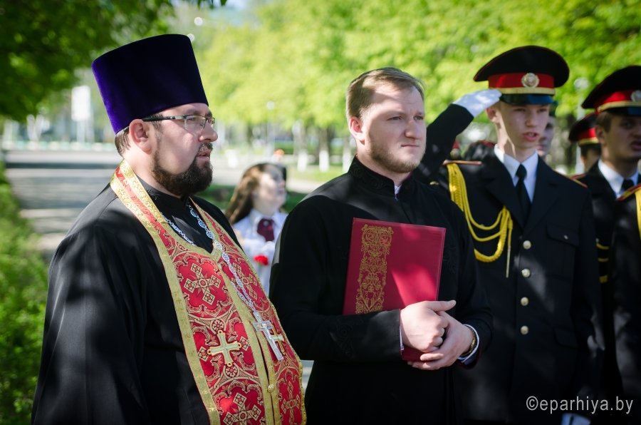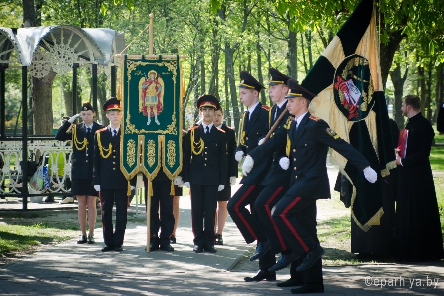 5 мая 2017г. Преосвященнейший Стефан принял участие в торжественном митинге и церемонии возложения венков и цветов, посвящённых Дню Победы. Мероприятия прошли на кургане Славы в парке Фестивальном г.Гомеля. На митинге присутствовали: исполняющий обязанности директора Гомельского кадетского училища Караев Владимир Салимович, Руденок Оксана Константиновна, а также ветераны и гости города. Владыка Стефан поздравил всех собравшихся с Великим праздником Победы, выразил благодарность ветеранам военных действий, за их героизм и мужество, пожелав им крепкого здравия и помощи Божией, а всем павшим небесного царствия. Гомельскому кадетскому училищу Преосвященный Стефан в торжественной обстановке передал освященную хоругвь. Кадеты в свою очередь обратились к Преосвященному Владыке с приветственным адресом, в котором отметили: "Преосвященнейший Владыка Стефан. Сегодня Вы освятили и передали нам, кадетам Гомельского городского кадетского училища, хоругвь с ликом Архангела Михаила. Мы убеждены, что Архангел Михаил, начальник воинства небесного, будет охранять нас. Придет время, и мы встанем на службу Отечеству. Сегодня мы обрели знамя веры и мужества. Наша кадетская семья отныне будет готовить себя для служению Родине, неся не только свое знамя училища, но и знамя православной церкви. Во время всех торжественных мероприятий: принятия клятвы кадета, торжественных парадов, крестных ходов, молебнов — хоругвь все будет с нами. Михаил Архангел будет нашим защитником и покровителем в борьбе добра и зла. Он первым вступил в эту борьбу на небесах. Это противоборство между добром и злом теперь продолжается на земле, все люди являются его участниками. И мы всегда будем за правду, как говорил другой святой воин Александр Невский, что Не в силе Бог, а в правде. Мы уверены, что в такой борьбе нам поможет наш духовный стяг и наш покровитель Михаил Архангел! Большое спасибо за драгоценный духовный дар, клянемся, что не отступим от своего убеждения преданно служить вере и Отечеству". |