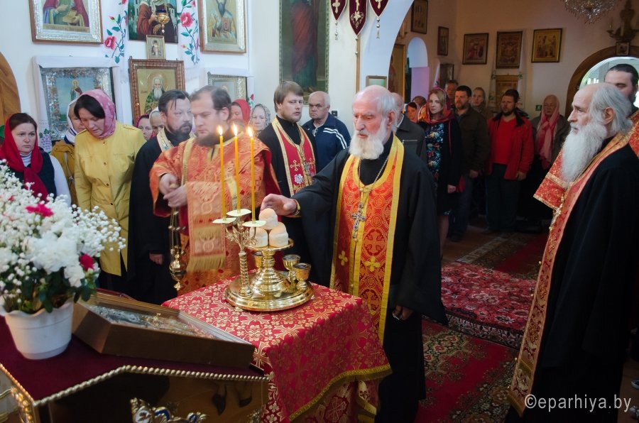 5 мая 2017г., в канун дня памяти святого вмч. Георгия Победоносца, Преосвященный Стефан совершил всенощное бдение в одноименном храме г. Гомеля. Преосвященному сослужили: секретарь Гомельской епархии протоиерей Георгий Алампиев, духовник Гомельской епархии протоиерей Стефан Гладыщук, настоятель и духовенство храма. По окончании богослужения Владыка поздравил всех с престольным праздником и обратился со словами Архипастырского назидания. |