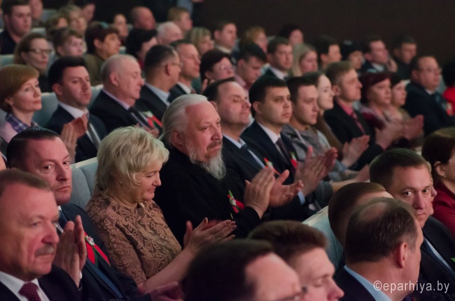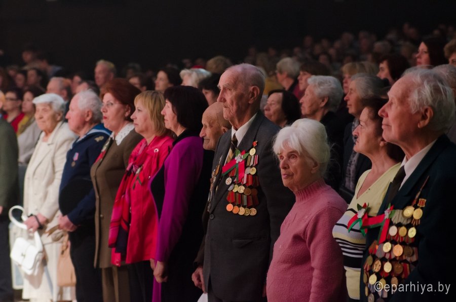 День Победы… Этот праздник не перестаёт вызывать в сердцах людей и боль, и радость. 6 мая 2017 г., Преосвященный Стефан, епископ Гомельский и Жлобинский посетил торжественное собрание в Общественном - культурном центре г. Гомеля, посвящённому Дню Победы. Уже на входе в концертный зал гостей ожидали интересные тематические выставки, посвящённые памятной дате. С приветственным словом от городского и областного руководства выступил председатель Гомельского облисполкома Владимир Дворник: «В достижение Победы неоценимый вклад внесла Гомельская область. Наша земля стала единым рубежом обороны. Немецкие войска испытали на себе сопротивление и контрудары советских войск и ополченцев под Гомелем, Жлобином, Рогачёвом. На нашей земле развернулось одно из величайших в Великой Отечественной войне наступлений Красной Армии – операция «Багратион». Она сыграла решающую роль в изгнании захватчиков с территории Советского Союза и полностью освободила Гомельскую область от нацистской оккупации.» На мероприятии также присутствовали: руководство области и города, ветераны войны, труда и Вооружённых Сил, представители трудовых коллективов, молодёжь. Трогательно, от всей души, от всех участников торжественного собрания выступили вокальные исполнители и хореографические коллективы города и области. |