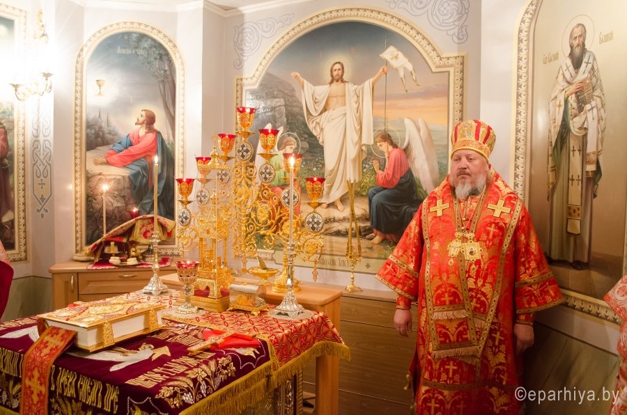 8 мая 2017г., в день памяти апостола и евангелиста Марка, Преосвященнейший Стефан в сослужении духовенства собора возглавил Божественную литургию в криптовом храме Свято-Петро-Павловского кафедрального собора г.Гомеля. По окончании богослужения епископ Стефан поздравил причастников с принятием Святых Христовых Таин и обратился к молящимся со словами Архипастырского назидания. |
