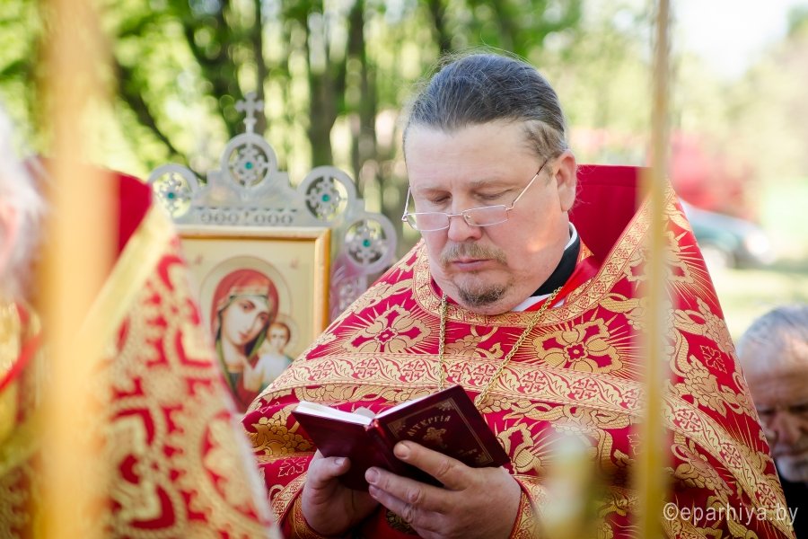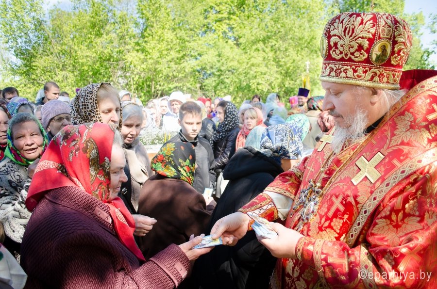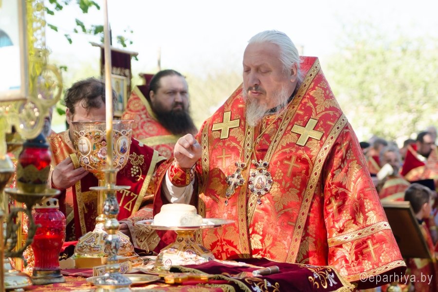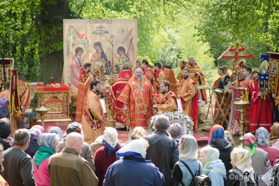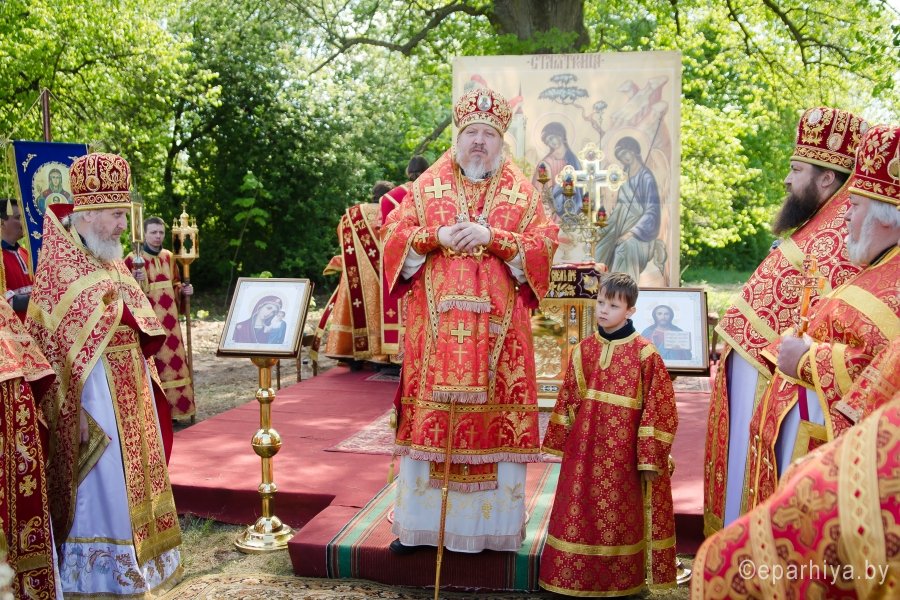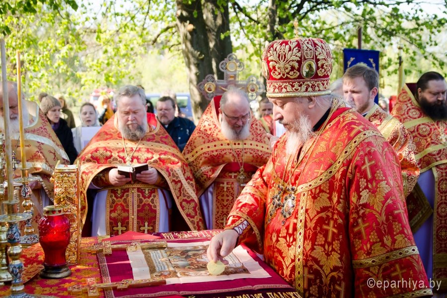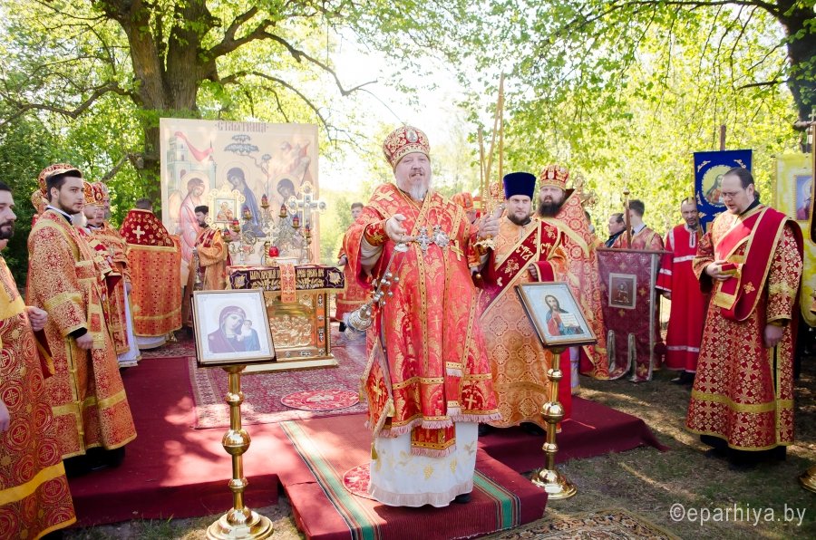 Память – это самое важное, что есть у человека. Она согревает его душу теплом хороших событий и прожигает до мозга костей воспоминаниями о смертях и потерях. Она не дает человеку повторить страшные ошибки, благодаря ей помнят многие подвиги и свершения. В русской православной церкви, отдельное место в памяти каждого верующего отводится тем, кто отдал свою жизнь за молитву Богу и распространение Веры. Тем, кто под страхом смерти не предал своих идеалов и поправу считается Святым и почитаемым для каждого христианина. Однако время идет, оно не щадит не только людей, но и людскую память, стирая из нее имена праведников, которых нельзя забывать. Сегодня, 13 мая 2017г., дабы почтить память святителя Макария Киевского и напомнить всем о его бессмертном подвиге, по благословению преосвященнейшего Стефана, епископа Гомельского и Жлобинского, состоялся Крестный ход и Божественная литургия под открытым небом на территории бывшего Макарьевского монастыря. «По преданию, первоначально около 1760 года здесь обосновался старец-старообрядец Иоасаф, бежавший из г. Гжатска от царских властей. В 1783 году это место известно под названием раскольничья Асафова пустынь, расположено на берегу у слияния рек Дрогитивля и Хоропуть. В 1799 году именуется Иоасафовский монастырь, с 1820-х гг. называется Макарьевским. Постановлением Синода в 1844 году обращён в единоверие, первым настоятелем был игумен Гермоген, скончался в сане архимандрита в 1860 году. Вторым настоятелем стал архим. Гедеон до 1874 года, третьим иеромонах Иоанн (скончался в 1878 г.). Так как было мало единоверческих насельников монахов, и 10 июля (ст. ст.) 1876 года монастырь закрылся, его имущество было передано Чонскому. К 1914 году на месте монастыря находились только заброшенные здания. 12 марта 1914 года решением Синода была создана женская община, приписная к женскому Чонскому монастырю, освящён в честь Макария Киевского. 7 июля из Чонского в Макарьевский была перенесена чудотворная икона Казанской Божией Матери. Указом Синода 2 августа 1916 года преобразован в самостоятельный женский. Первым настоятелем стал игумен Иннокентий (Мельниченко), скончался в Добруше в 1947 году, игуменьей монахиня Серафима (Орлова). На территории было единственное каменное здание, которое в развалинах сохранилось поныне. В нём был домовой храм в честь иконы Казанской Божией Матери. Закрыт в 1928 году, здания и имущество передано совхозу «Хоропуть»». По окончанию Богослужения, к собравшимся обратился Епископ Гомельский и Жлобинский Стефан. В своем обращении Владыка отметил: «Когда-то, здесь был великий монастырь, в котором горела ярким огнем свеча Христианской веры, в котором текла жизнь и была связь с Богом. Но из-за людской невежливости и нетерпимости к Богу, почти сто лет назад, это некогда святое место было отдано под свинарники и сараи. Наша миссия, как истинных верующих, никогда не забывать о прошлом этого места. Сегодняшняя служба – это первая почти что за сто лет Богослужение на данном месте и оно должно стать началом возвращения к истокам, к Святым местам. Сегодня, мы отдаем дань памяти не только этому храму, но и святителю Макарию Киевскому, который под пытками не сдался врагу и понес мученическую смерть. Его имя также забывается, а этот грех будет на нашей вине. Это не единственный пример, наше поколение стало забывать местночтим