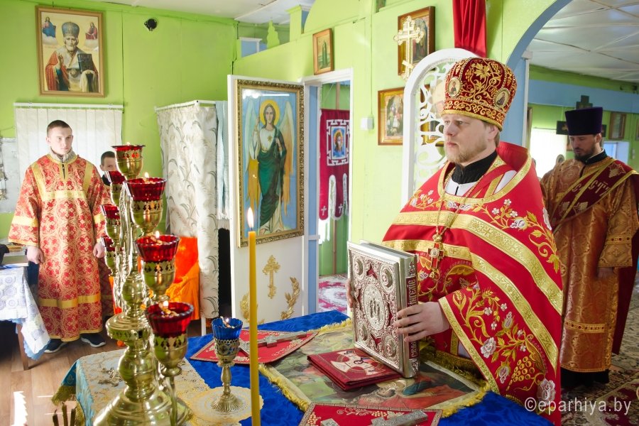 14 мая 2017г., в Неделю 5-ю по Пасхе, о самаряныне, Преосвященный Стефан совершил Божественную литургию в храме Рождества Пресвятой Богородицы в д. Уборок. Преосвященному сослужили: секретарь Гомельской епархии протоиерей Георгий Алампиев, благочинный Лоевского округа иерей Дмитрий Чварков и духовенство храма. По окончании богослужения Владыка поздравил причастников с принятием Святых Христовых Таин и в память об этом дне раздал всем иконки. |