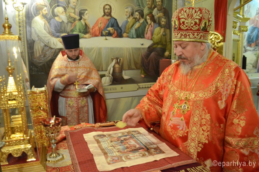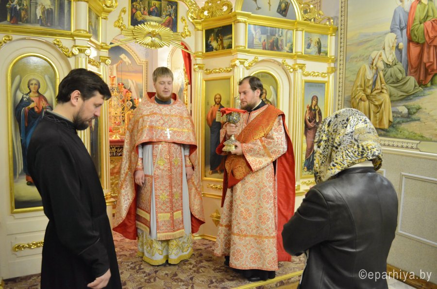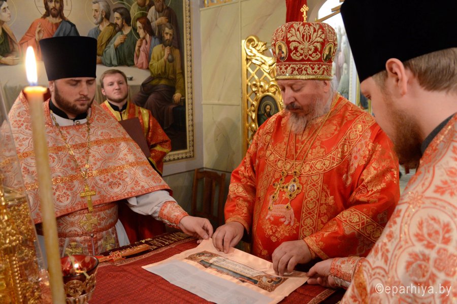 15 мая 2017г., в день памяти свт. Афанасия Великого, Преосвященнейший Стефан в сослужении духовенства собора возглавил Божественную литургию в криптовом храме Свято-Петро-Павловского кафедрального собора г.Гомеля. По окончании богослужения епископ Стефан поздравил причастников с принятием Святых Христовых Таин и обратился к молящимся со словами Архипастырского назидания. |