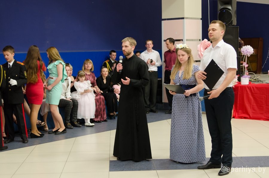 14 мая 2017г. Преосвященный Стефан, епископ Гомельской и Жлобинский, посетил Пасхальный бал «Бисер времени» в Городском центре культуры, организованный Отделом по работе с молодежью Гомельской епархии совместно с Гомельским городским исполнительным комитетом при участии православного молодежного братства при храме преподобного Серафима Саровского в г. Гомеле. Участниками бала традиционно стали не только гомельчане, но и пары из других городов Беларуси, а также гости, среди которых священнослужители гомельских приходов, представители журнала «Сретение». — Бал православной молодежи — прекрасная возможность встретить близких по духу людей, разделить радость праздничных дней, подружиться и укрепиться в вере, — отмечает иерей Дмитрий Мельников, руководитель отдела по работе с молодежью Гомельской епархии. — Подобные мероприятия учат этикету, искусству общения и становятся школой красивых отношений. Программа бала включала два танцевальных отделения. Вальсы, старинные контрдансы, народные танцы. |
