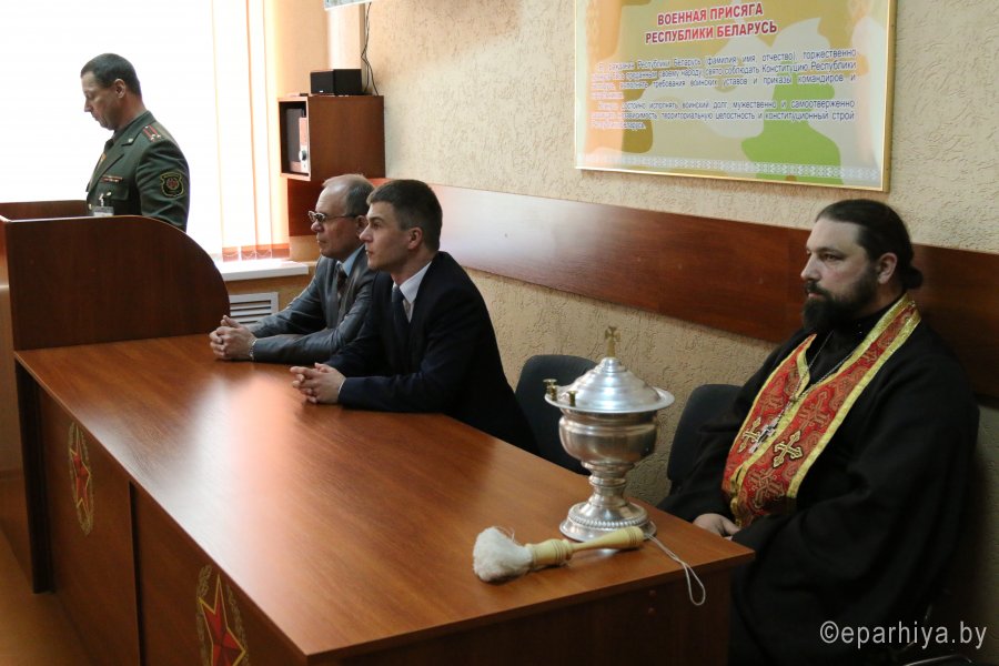 15 мая состоялось открытие призывного пункта Городского военного комиссариата. Мероприятие традиционно возглавил начальник Гомельского гарнизона – военный комиссар Гомельской области полковник Кривоносов А.В. Также присутствовали представители советов ветеранов и офицеров запаса. От лица духовенства с важным событием в жизни молодых людей поздравил клирик храма святого Архангела Михаила в г. Гомеле иерей Максим Новик, а в завершении окропил собравших Святой водой. |