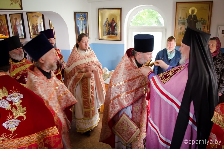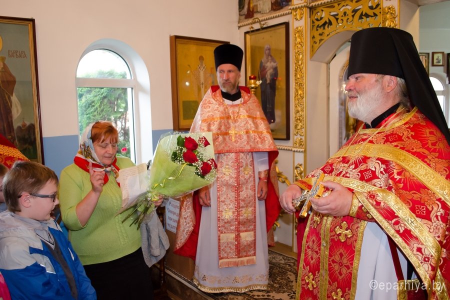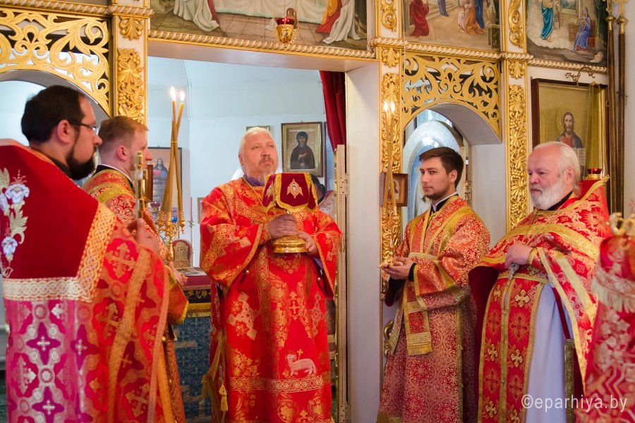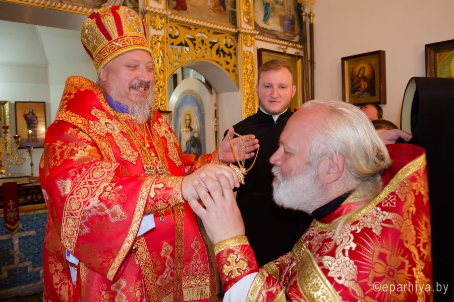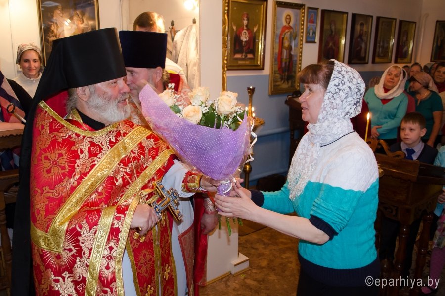 24 мая 2017г., в день Отдания праздника Пасхи, день памяти равноапп. Кирилла и Мефодия, Преосвященный Стефан совершил Божественную литургию в храме иконы Божией Матери "Скоропослушница" в г. Гомеле. Преосвященному сослужили: благочинный церквей Гомельского городского округа протоиерей Игорь Ольшанов, настоятель и духовенство храма. По окончании богослужения Владыка поздравил с Днем Ангела настоятеля прихода храма иконы Божией Матери "Скоропослушница" игумена Мефодия (Казакова) и преподнес в дар наперсный крест. |